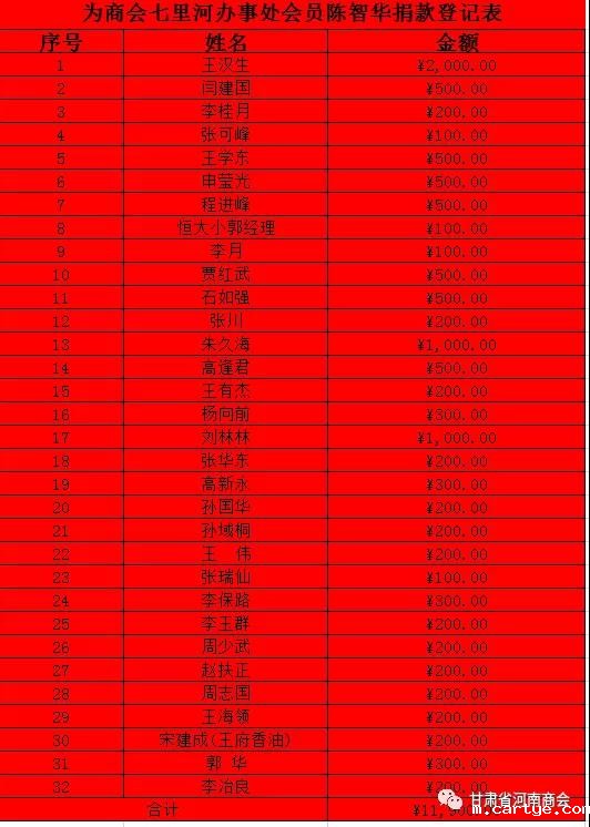 陈智华,河南省周口市项城人,37岁,甘肃省河南商会七里河办事处会员。4月20日,在河南郑大第一附属医院检查,被确诊为肾癌晚期和你淋巴瘤,至月底已花费10万多元。其家属由于10年前因工作失去了左臂,其母亲5年前由于脑出血成了植物人由其父亲照顾,家中还有两个未成年的孩子在读书,之前陈智华是在兰州做废品回收的,收入微薄,现在整个家庭都失去了经济来源!当我们从朋友圈“爱心筹”慈善平台得知这个消息后,办事处王汉生、朱久海、王学东、申莹光主任高度重视,先后在本群及商会各个群里发消息、发倡议书,大家也在各自的朋友圈发布“爱心筹”信息。截止2019年5月11日,办事处收到善款(现金)11900元,还有许多会员、老乡及各界爱心人士是在“爱心筹”里进行的捐助没有统计,在这里我们感谢所有以不同方式捐助的爱心人士。感谢大家对陈智华的关心、支持、帮助!祝大家身体健康!生意兴隆!