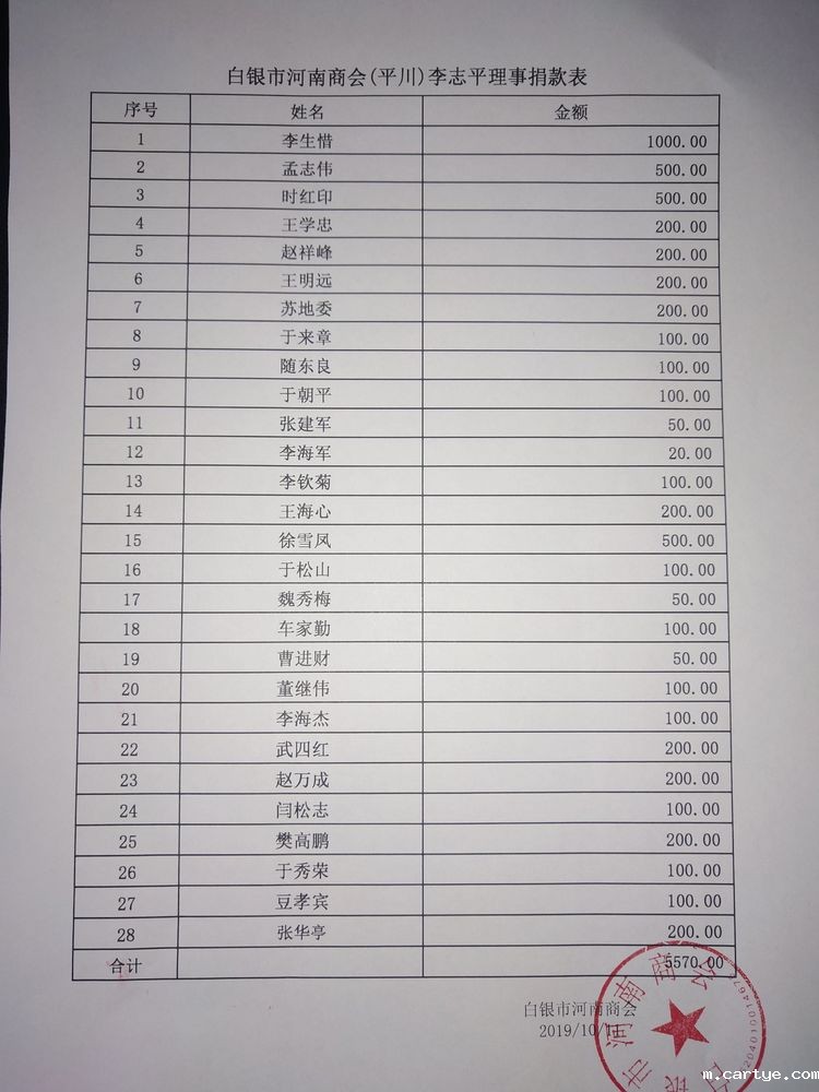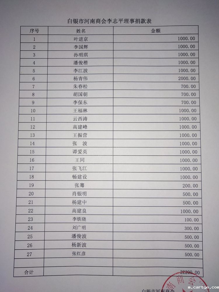 白银区域会员捐款名单;