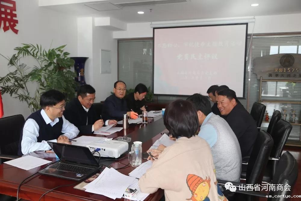根据山西省工商联商协会党委安排,结合商会工作实际,山西省河南商会党支部于11月24日组织全体党员召开了“不忘初心、牢记使命”专题组织生活会和民主评议党员会,刘红星会长及会员单位代表出席会议,会议由党建指导员白顺亭主持。