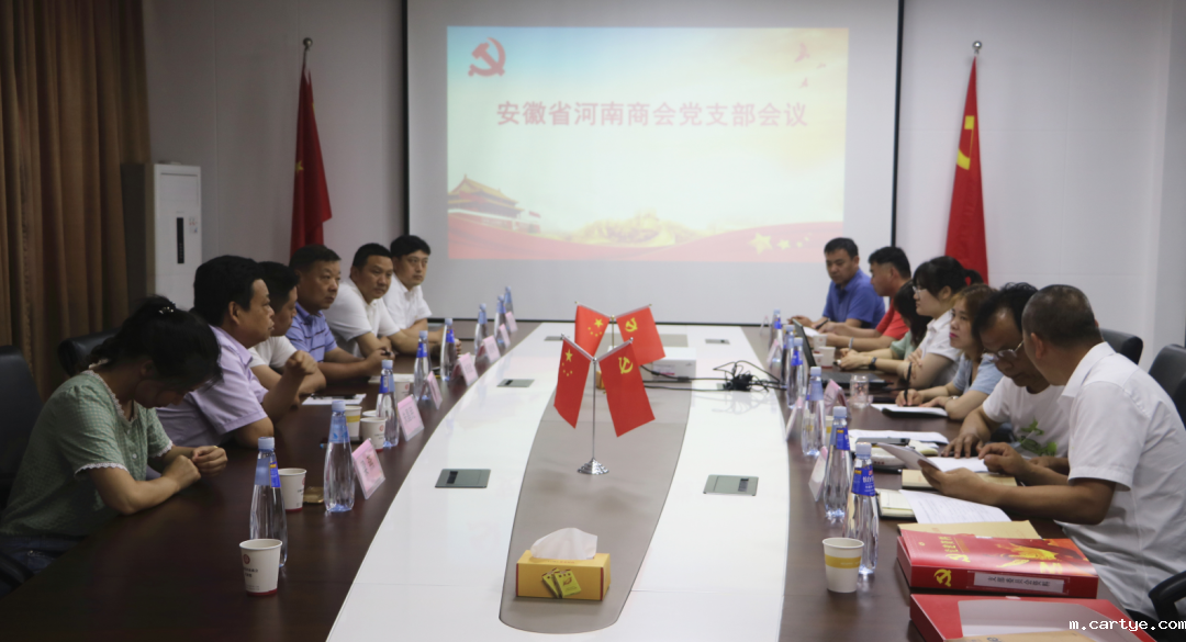 为扎实推进党建工作,贯彻学习全国两会精神,6月11日下午,安徽省河南商会党支部召开座谈会,邀请上级党组织专职负责人朱昌民、梁燕来支部指导工作。全体党员、积极分子、荣电集团工会主席石国军及秘书处等参加。会议由秘书长余光润主持。