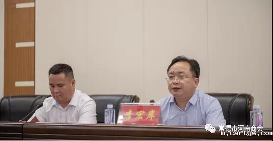 2020年7月29日,常德市河南商会第三届第一次会员代表大会在德华宾馆隆重召开。中共常德市委统战部副部长、市工商联党组书记李宏岸,市工商联党组成员、副主席黄明中,常德市工商联秘书长、会员经济联络科科长向寅军,市民政局社会组织管理科许为帅等出席了会议。