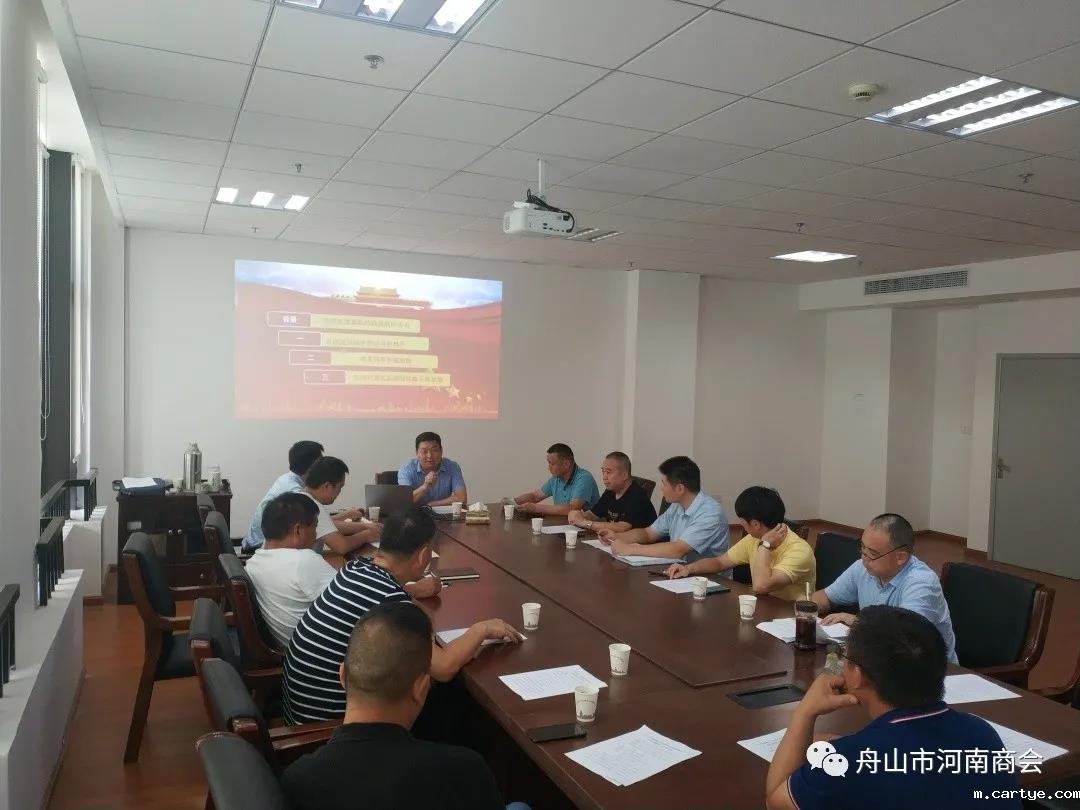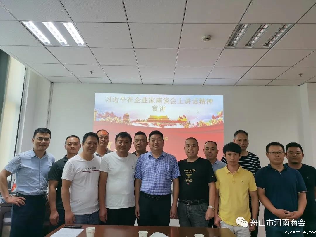 为深入贯彻学习习近平总书记在民营企业家座谈会上重要讲话精神。8月30日,舟山市河南商会组织召开学习贯彻习近平总书记在民营企业家座谈会上重要讲话精神宣讲会,商会邀请舟山市工商联副主席陈先彬出席会议并进行宣讲。舟山市河南商会会长郑德友、舟山市河南商会党支部书记邹治斌、舟山市河南商会执行会长李树勋、舟山市河南商会常务副会长白建军、舟山市河南商会副会长魏光华、舟山市河南商会副会长杨志刚等二十余位商会会员参加此次宣讲会。舟山市河南商会秘书长张春雷主持会议。