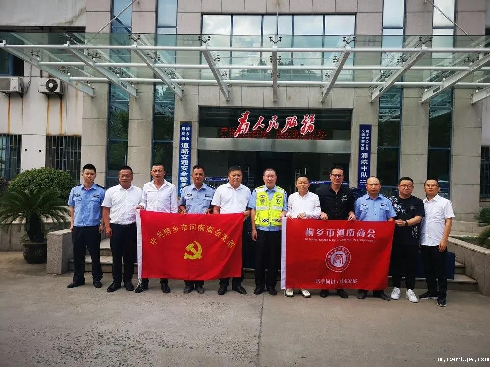 9月27日下午,在2020中秋、国庆来临之前,桐乡市河南商会前往桐乡市公安局交通警察大队濮院中队,看望慰问一线交通警察,并送上中秋月饼和水果,致以节日祝福。