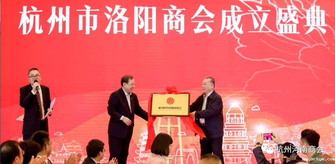 2020年10月18日下午2:30分,杭州市洛阳商会在杭州市之江饭店5楼多功能厅履行完所有法定程序,隆重成立。杭州市委统战部巡视员徐祖德,河南省政协经济委员会原副主任张正林,杭州市委原常委、杭州军分区司令员梁朝清,杭州市工商业联合会(总商会)秘书长黄凯旋、组织建设部部长叶晓良,杭州市民政局调研员曾欣华,洛阳市工商联副主席苏银松,伊川县委常委、统战部部长姬素娟。大会还特别邀请了洛阳市人民政府原副市长杨萍,杭州市公安局禁毒分局原政委孟兰平,杭州河南商会会长朱朝阳等各级领导参加会议