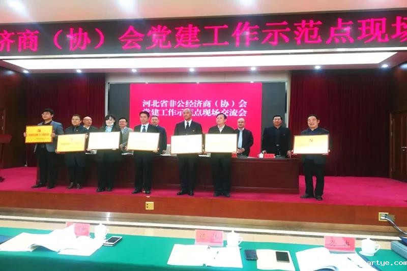 会议听取了河北省河南商会党支部等7家商协会党建工作交流,并为他们颁发了党建示范点牌匾。
