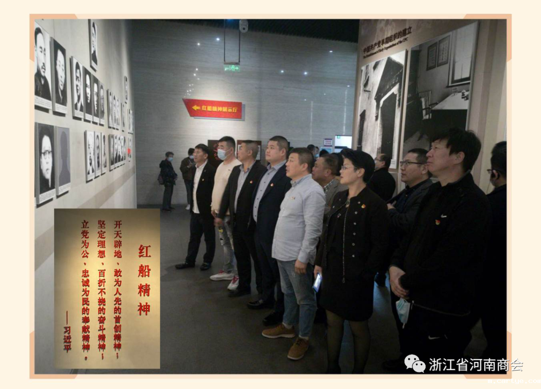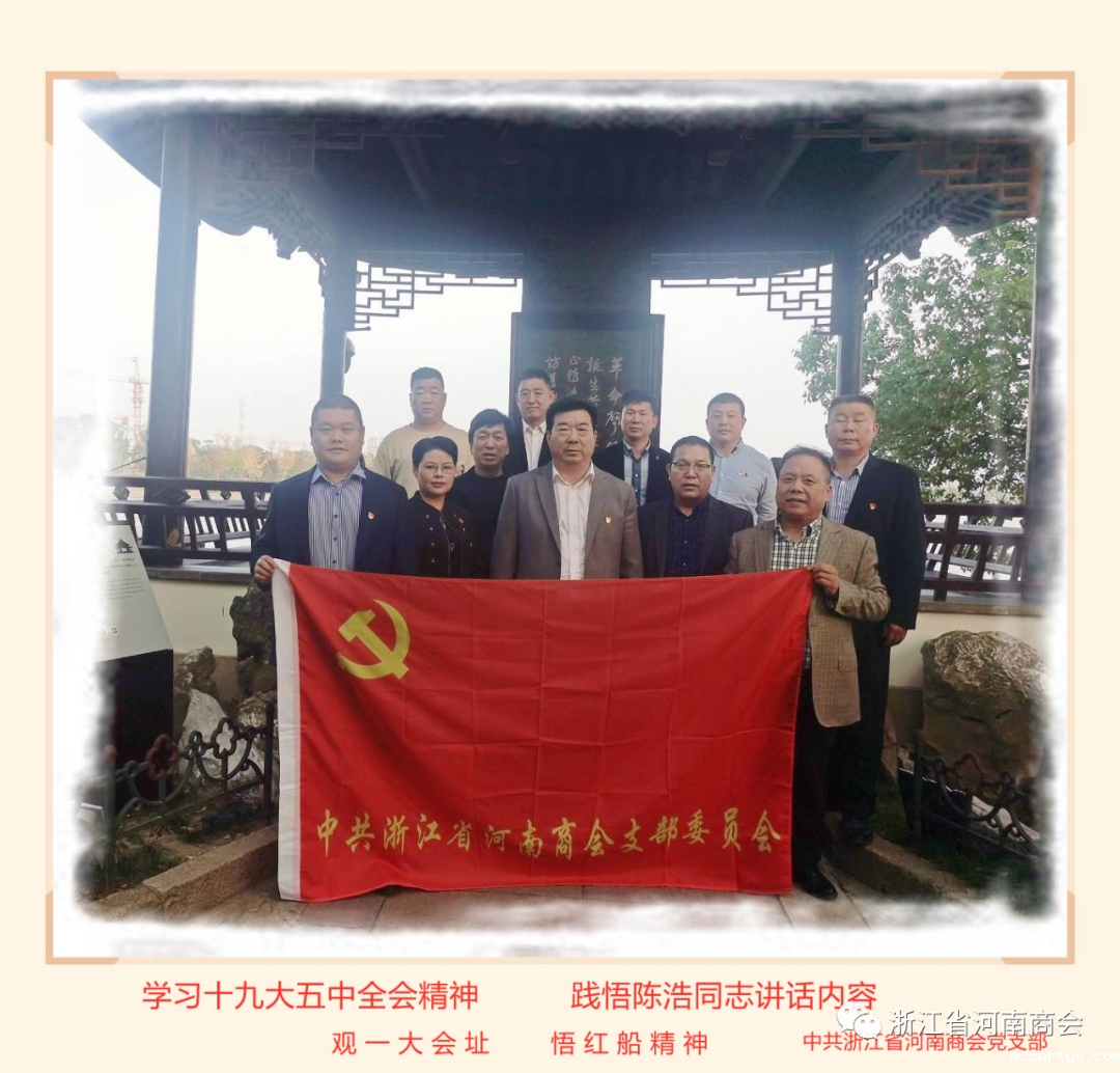 为学习领会党的十九届五中全会精神,积极响应落实浙江省工商联首届浙江商会周活动,践悟陈浩同志讲话内容,2020年11月7日,浙江省河南商会党支部赴我党诞生地嘉兴南湖,开展主题学习活动。