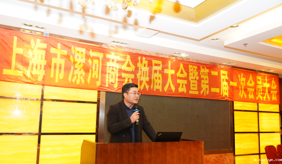 李旭宣读《上海市漯河商会章程》的修订说明,如成立党小组以更好的指引商会的发展;