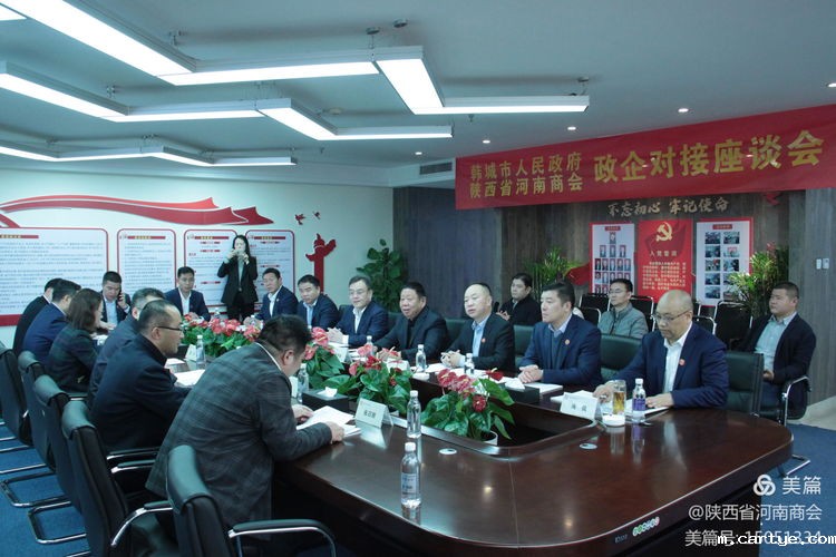 2021年3月10日上午,陕西省河南商会与韩城市人民政府政企对接座谈会在商会会议室举行。韩城市人民政府副市长雷哲,招商局副局长赵欣,经合中心副主任杨波等一行莅临商会出席了座谈会。