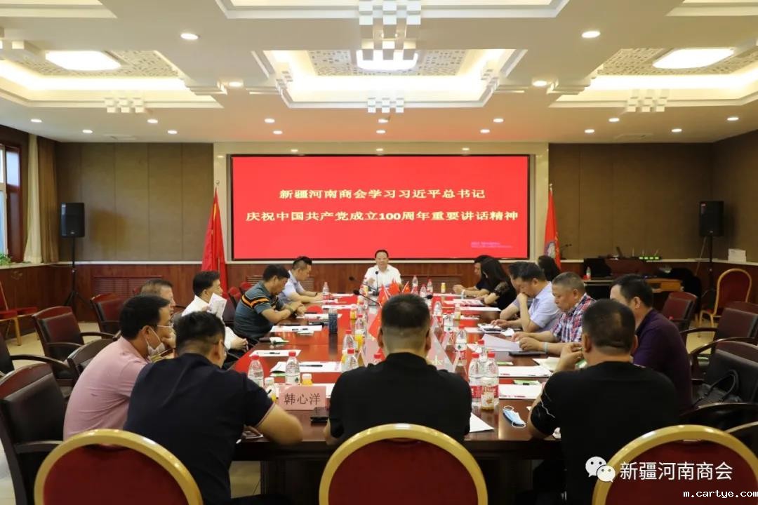 7月3日上午,新疆河南商会组织广大会员学习了习近平在庆祝中国共产党成立100周年大会上的讲话精神。