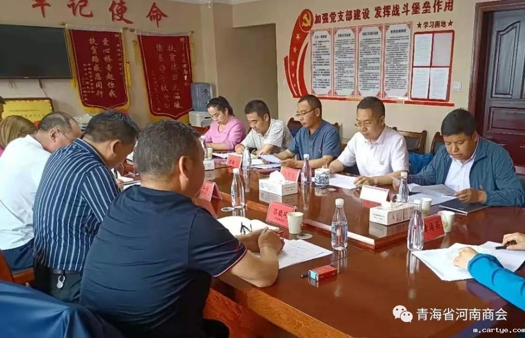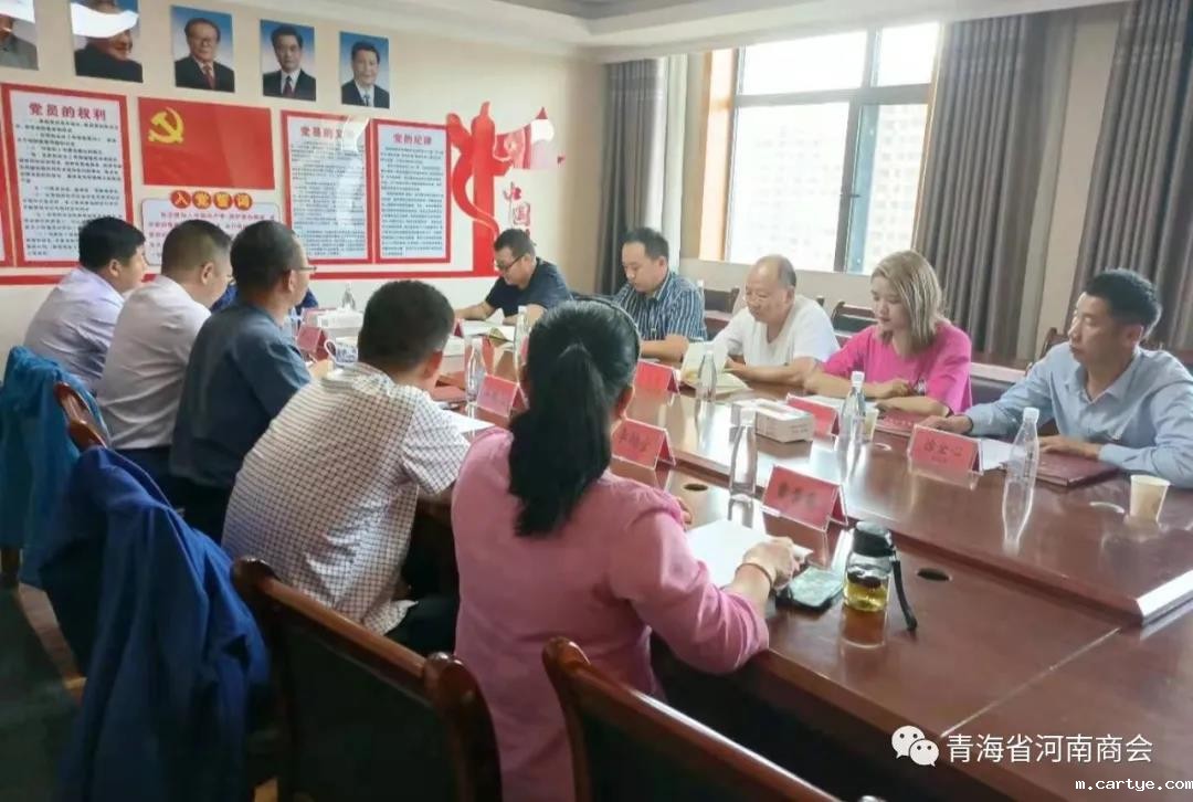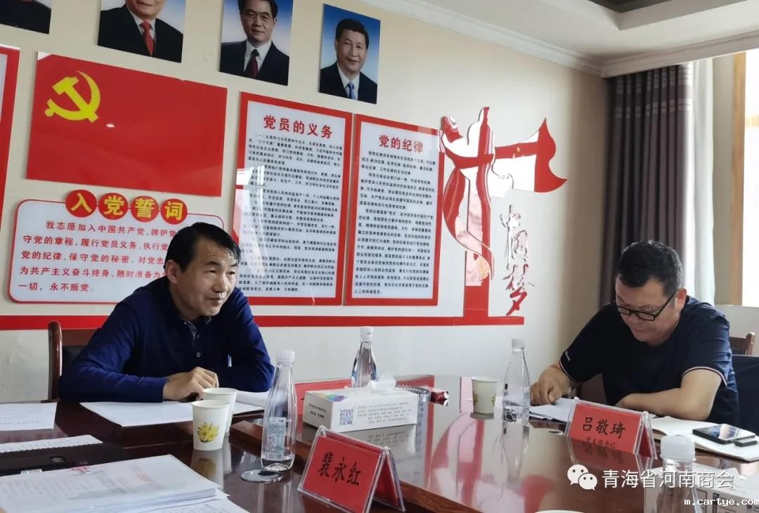 2021年8月12日下午,青海省河南商会党支部在商会党员活动室召开党史学习教育专题组织生活会,省工商联党组成员、副主席章海英、中共青海省工商联社会组织委员会委员、省工商联宣教部部长裴永红列席会议进行指导。会议由商会党支部书记吕敬琦主持。