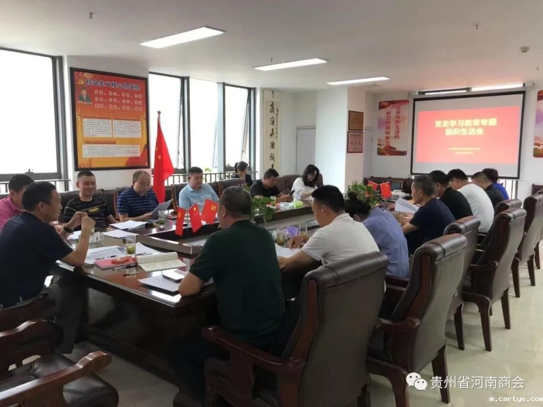 8月24日,中共贵州省河南商会党支部召开党史学习教育专题组织生活会,会议传达学习《习近平总书记在庆祝中国共产党成立一百周年大会上的讲话精神》、《工商联参与红色美丽村庄试点建设实施方案》文件精神、栗战书在2021年生态文明贵阳国际论坛上的主旨演讲、《中国共产党组织处理规定(试行)》(中办发{2021}15号文件)。