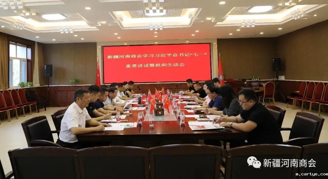 8月31日上午,新疆河南商会在二楼会议室举行了八九月交接班会暨学习习总书记七一重要讲话组织生活会。