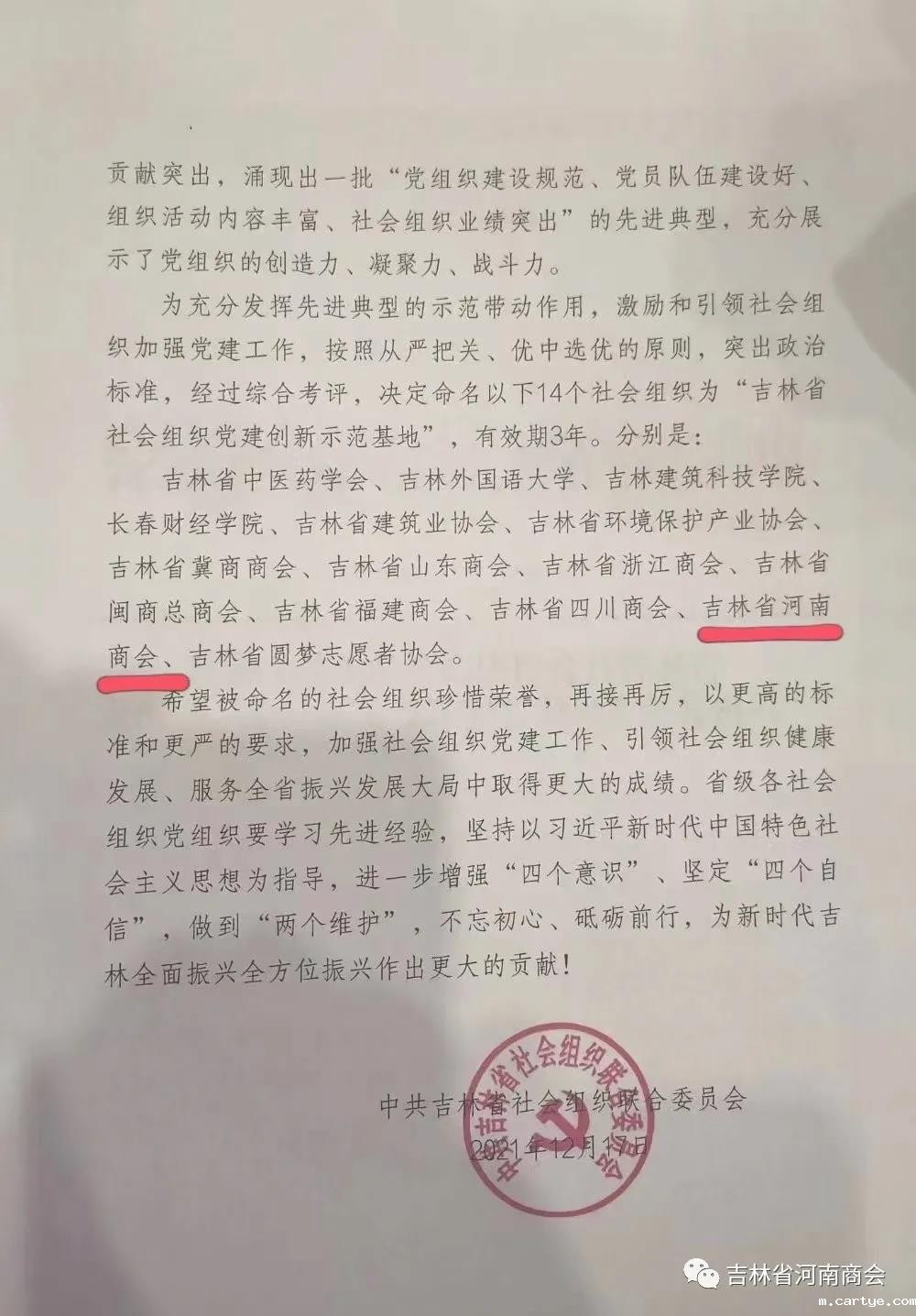 吉林省河南商会被评选为“吉林省社会组织党建创新示范基地”