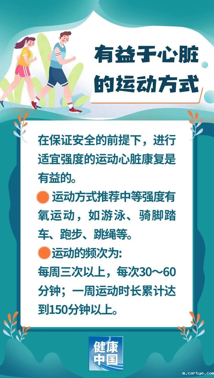 运动方式:可选择中等强度的有氧运动,也就是动用全身大肌群、有节律性的运动类型,如游泳、骑脚踏车、跑步、跳绳等。