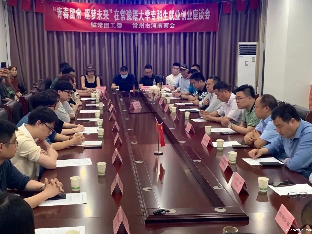 5月27日,常州市河南商会与共青团河南省委驻常工委举办“青春留常,逐梦未来”——在常豫籍大学专科生就业创业座谈会。座谈会邀请了市人力资源和就业创业服务中心毕业生就业指导处等单位代表,常州大学、常州机电职业技术学院等大学专科院校12名学生代表前来与商会会员企业代表进行座谈。座谈会上,与会人员聚焦当下大专生就业现状与问题、对策与建议等进行交流,就如何帮助在常豫籍大学专科生更好地就业创业进行了深入探讨。