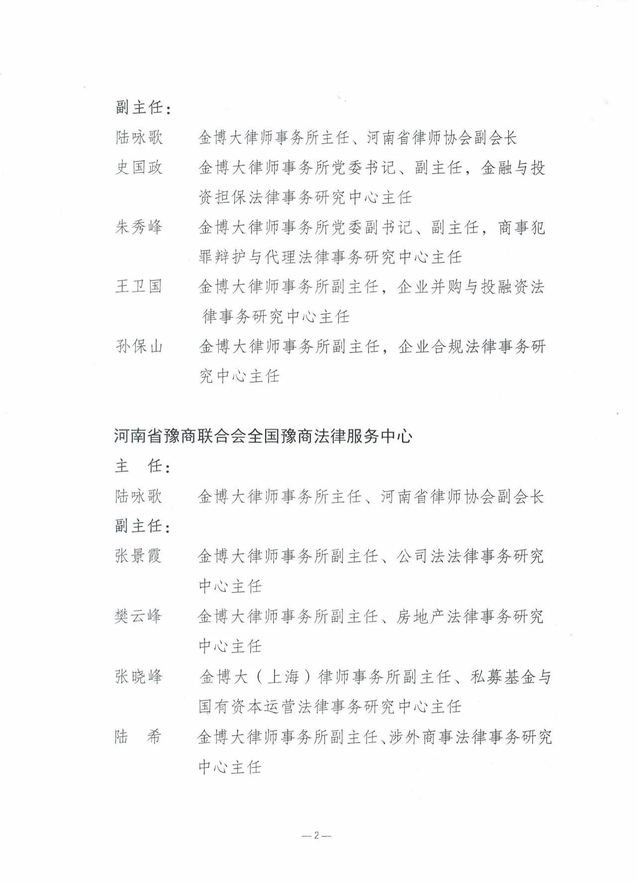 陆咏歌 金博大律师事务所主任,河南省律师协会副会长副主任