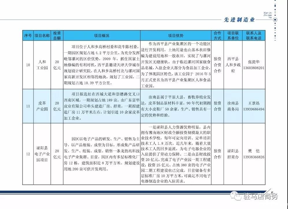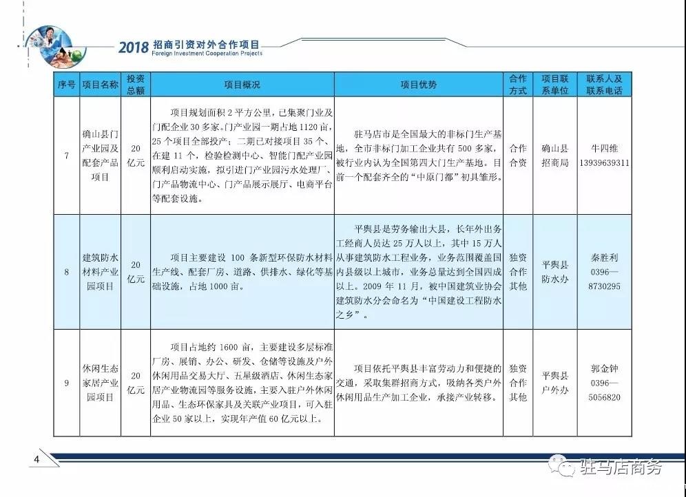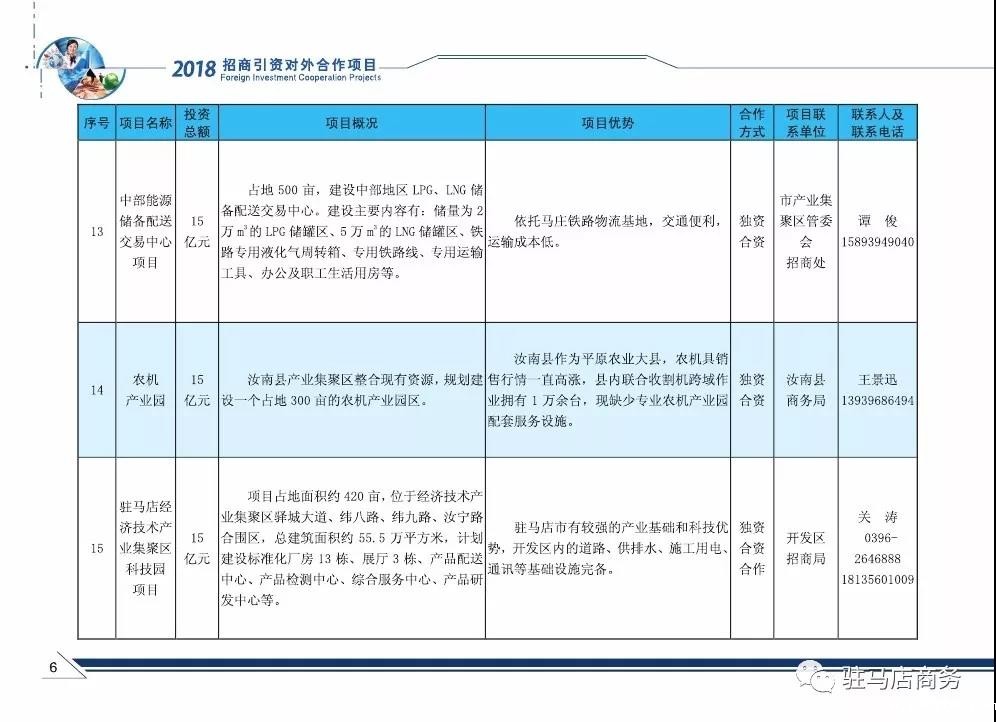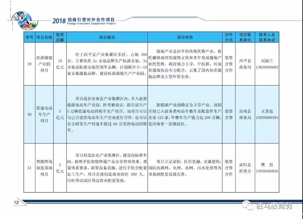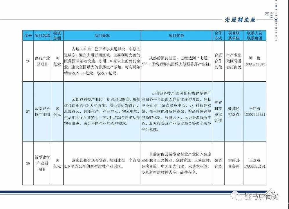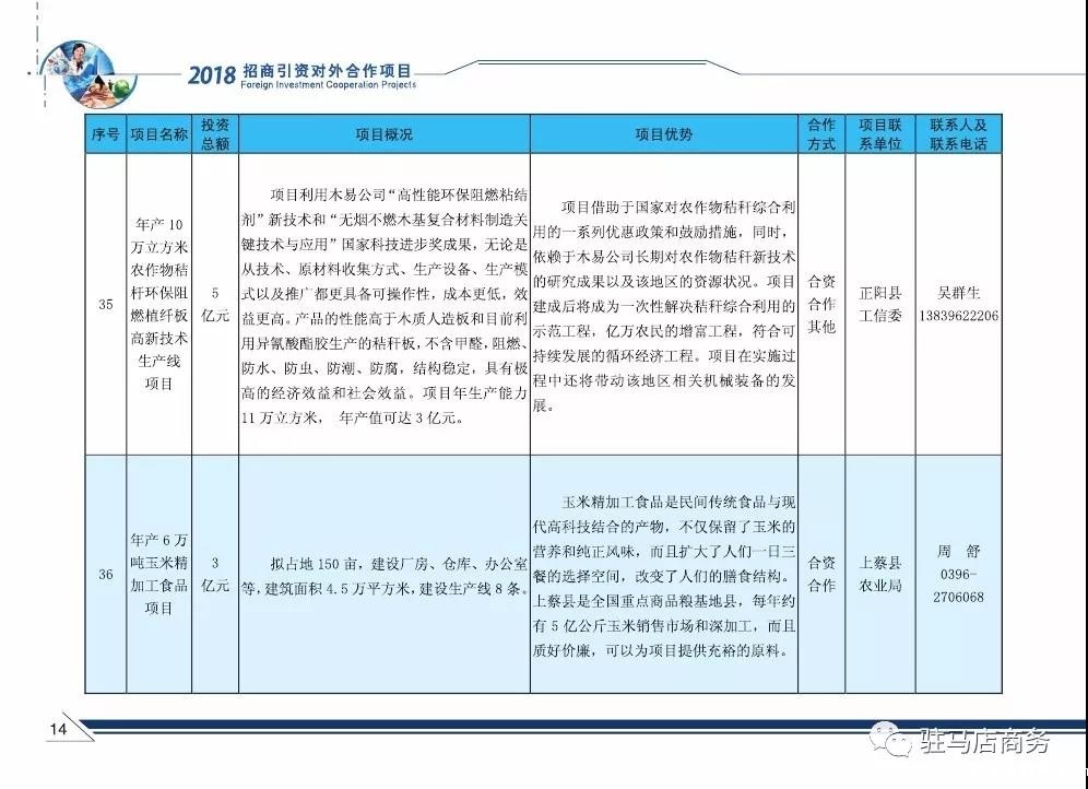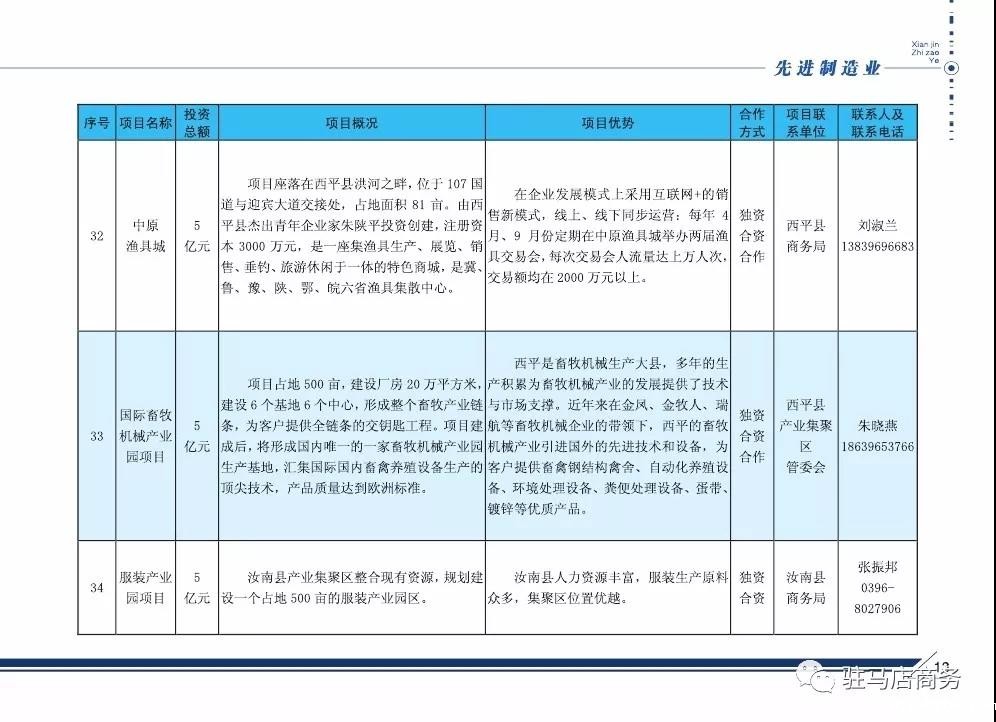 现将2018年驻马店市招商引资对外合作项目(先进制造业)发布如下: