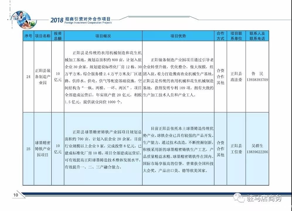 2018年驻马店市招商引资对外合作项目(先进制造业)
