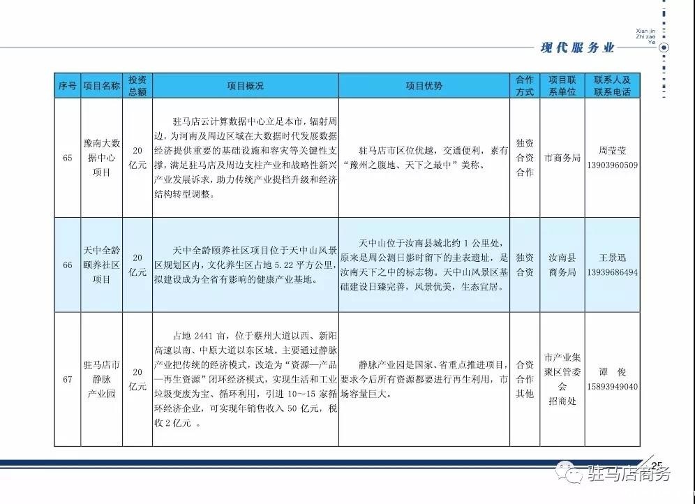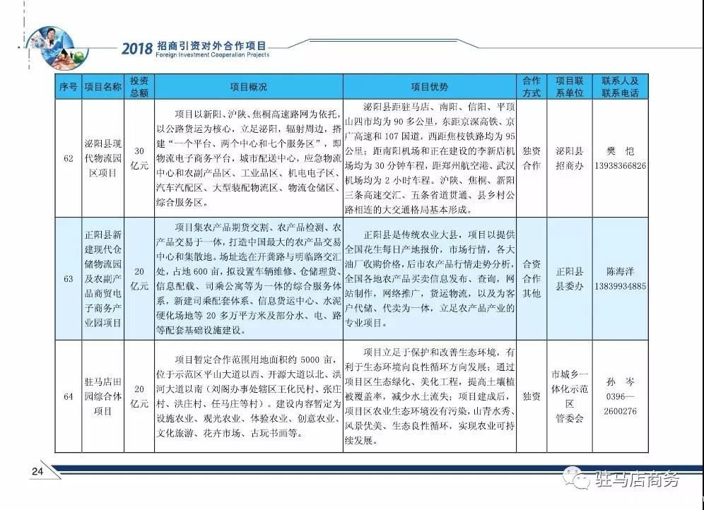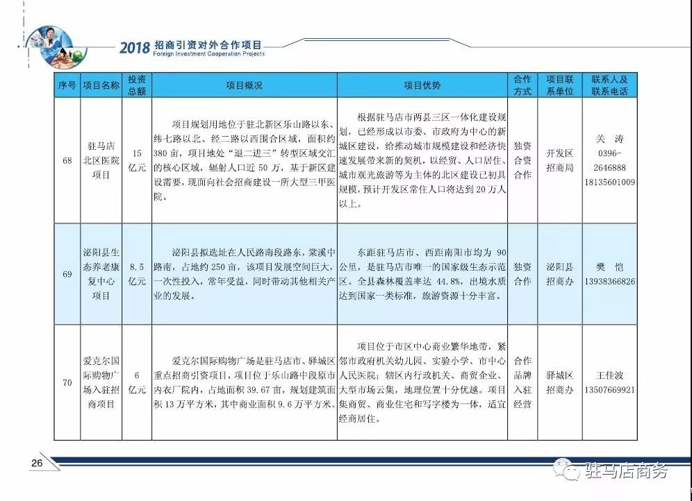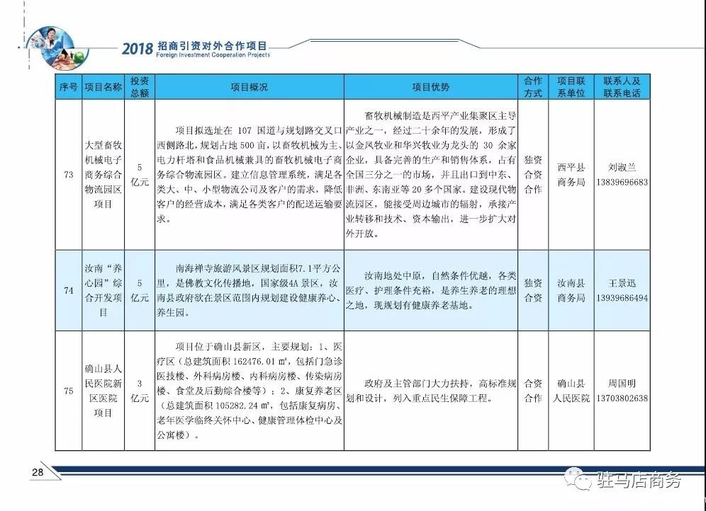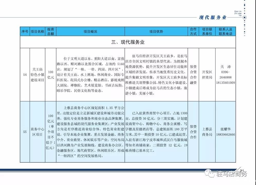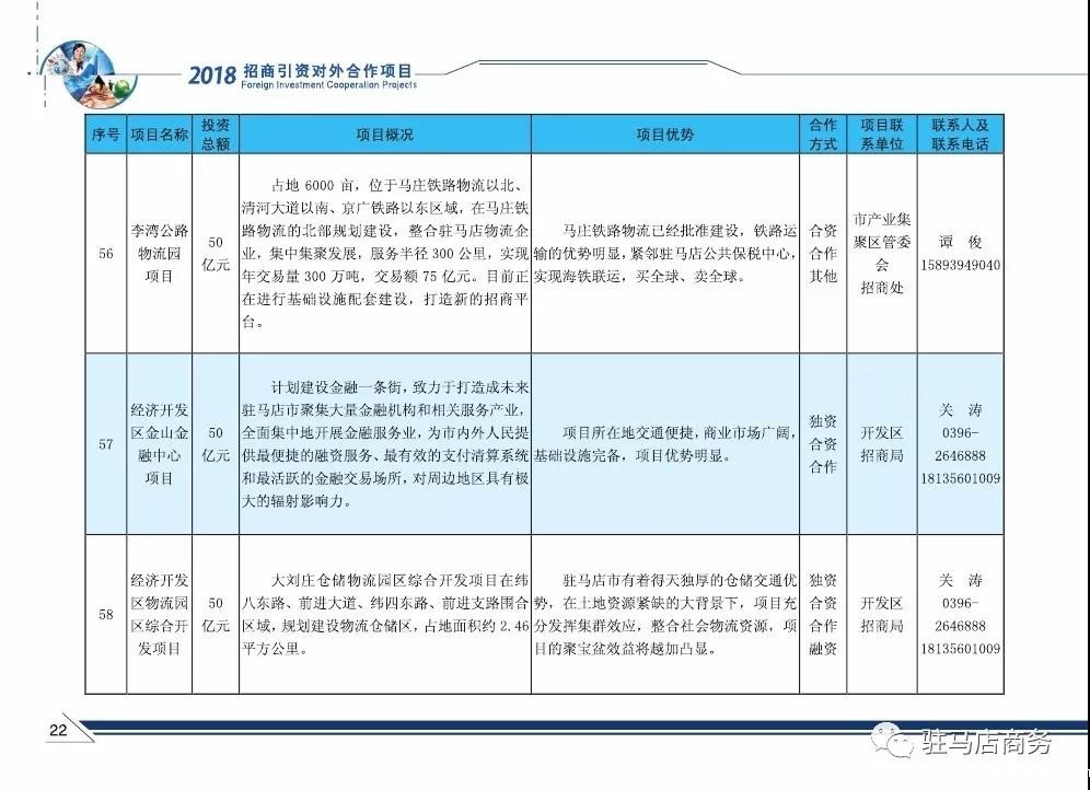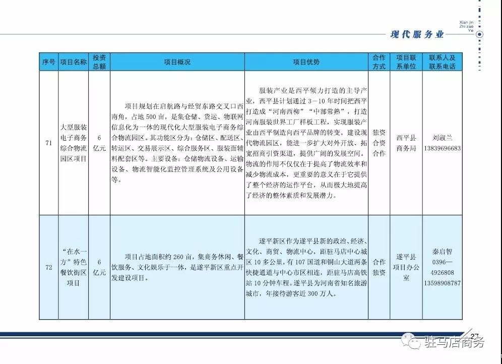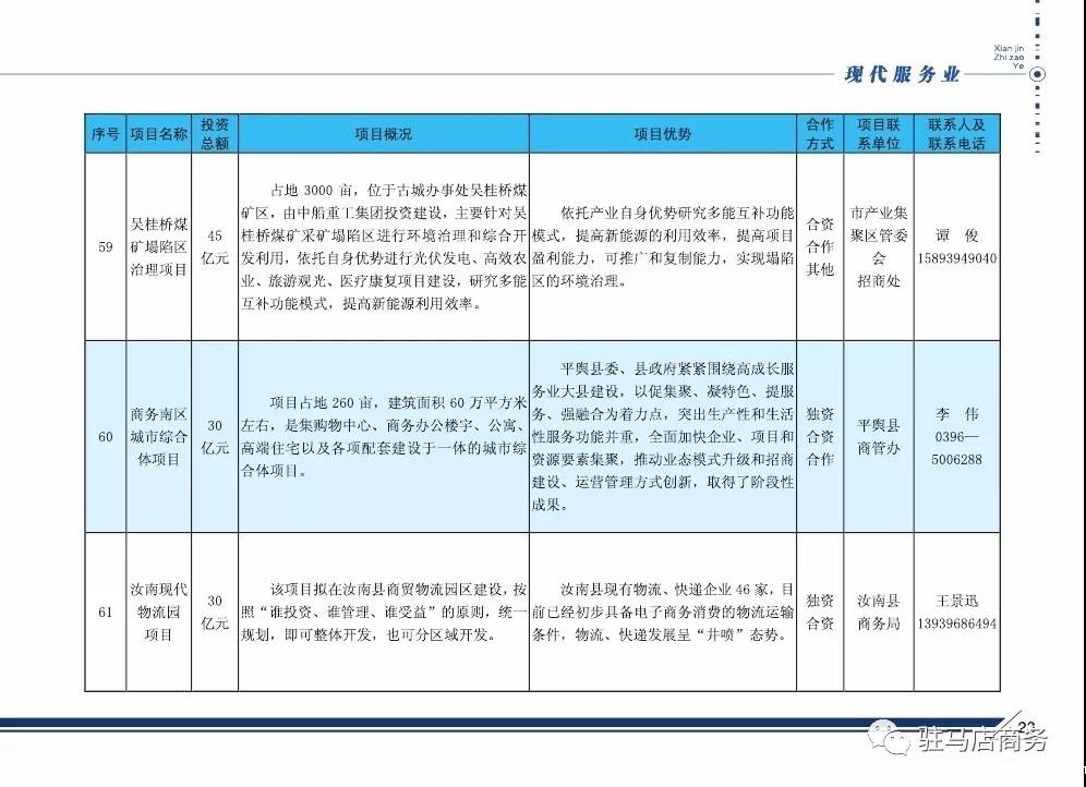 现将2018年驻马店市招商引资对外合作项目(现代服务业)发布如下: