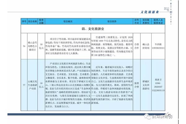 2018年驻马店市招商引资对外合作项目(文化旅游业)