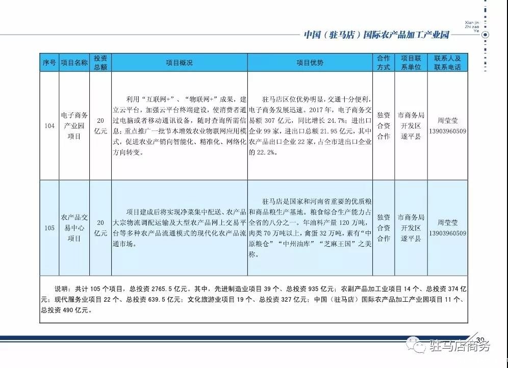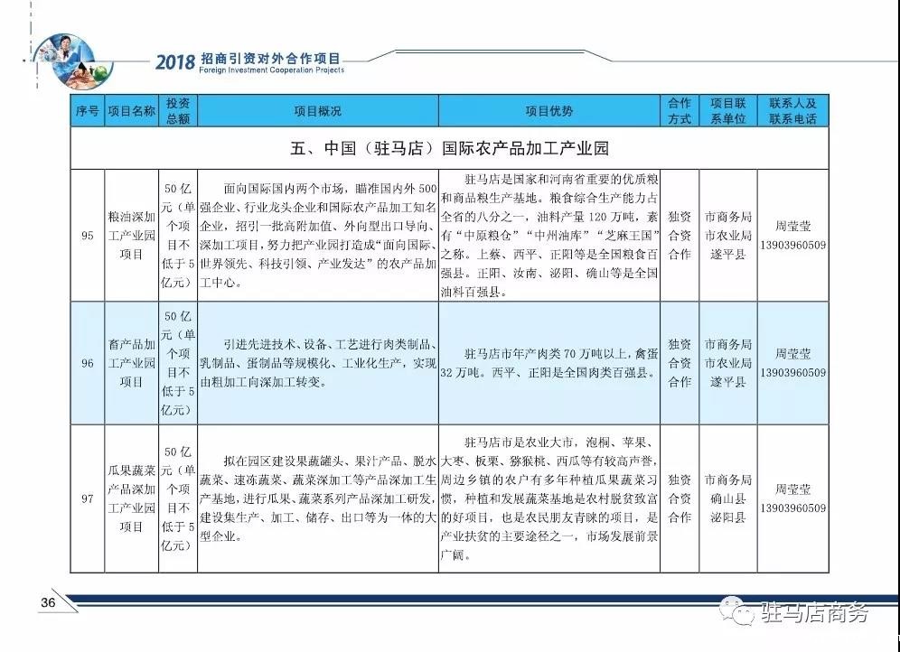 2018年驻马店市招商引资对外合作项目(中国国际农产品加工产业园)