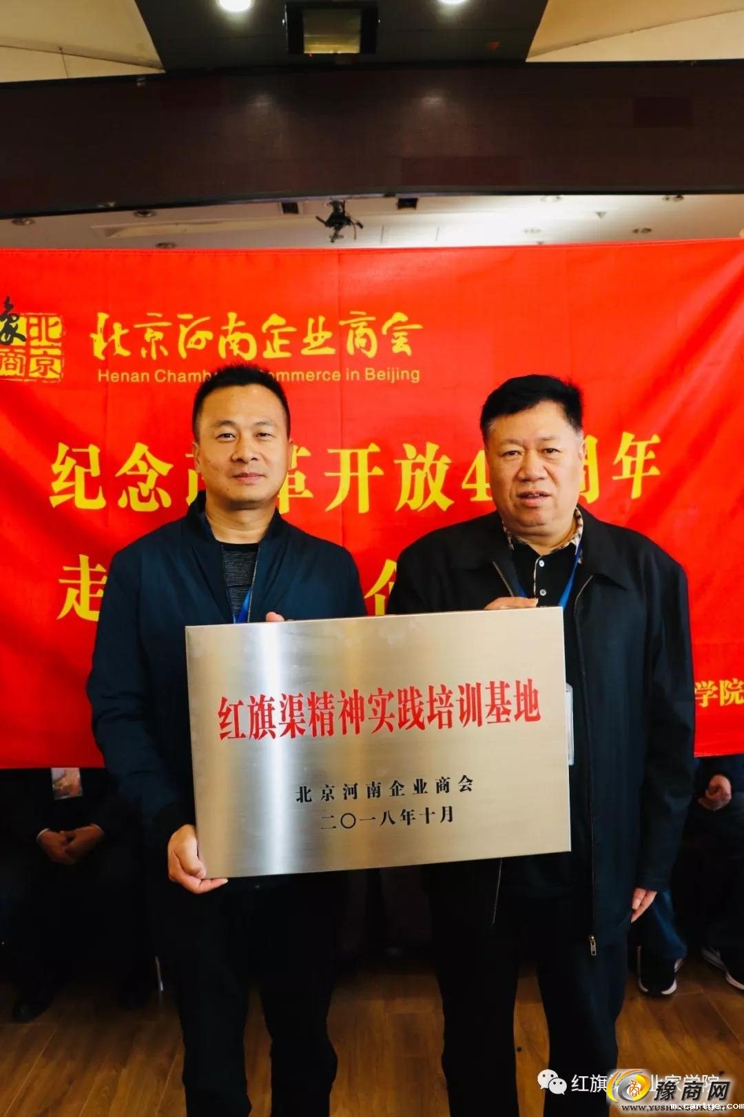 优米app下载安卓秘书长张正林(右一)受省政协原副主席、优米app下载安卓会长陈义初委托,向红旗渠企业家学院授牌。