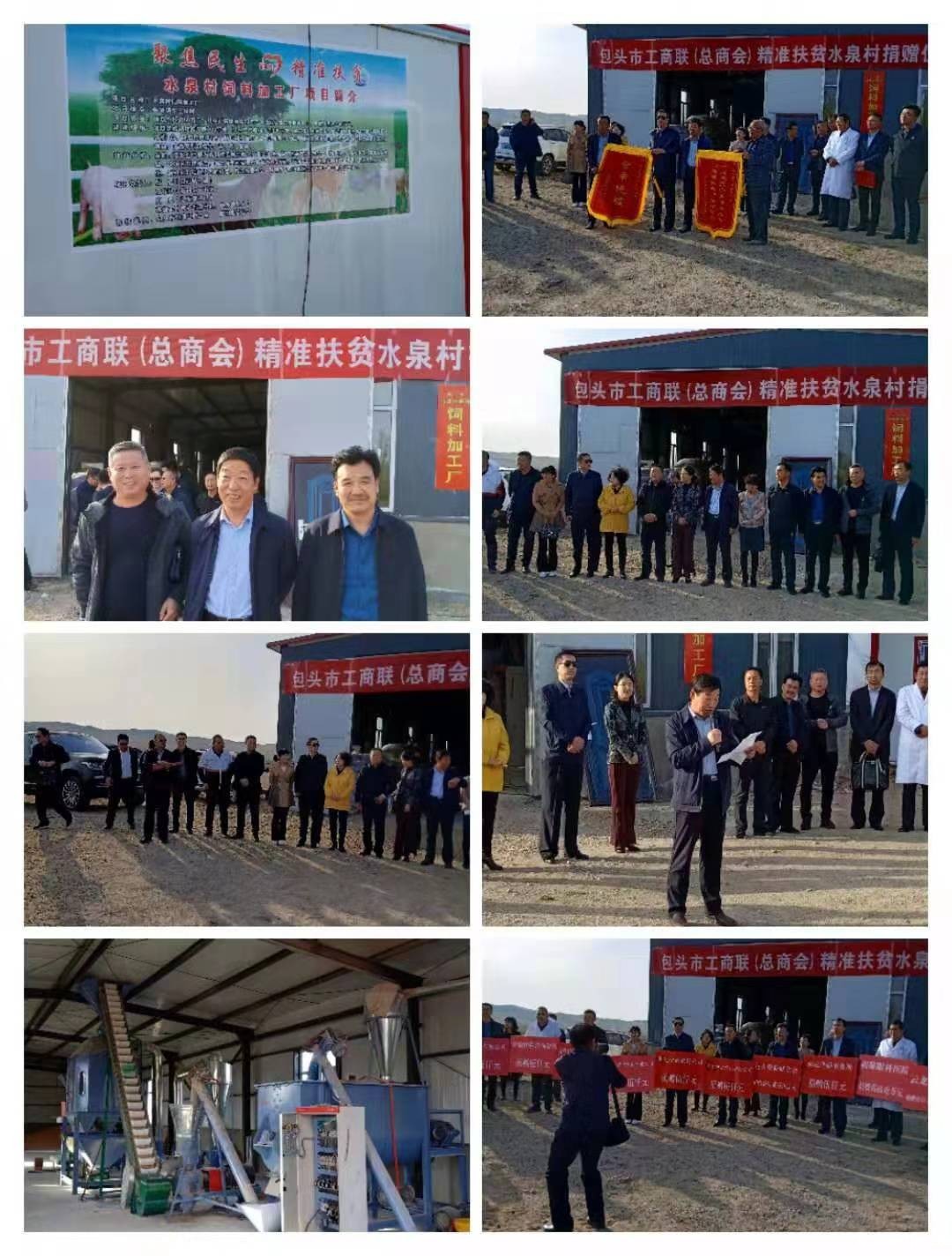 10月9日,包头市固阳县银号乡水泉村饲料加工厂举行了落成仪式。包头市工商联(总商会)主席安四虎、副主席陈佐,固阳县、乡、村党政领导等出席活动。包头优米体育总部地址电话常务会长刘红灿、董君圣等参加了捐赠仪式。该饲料厂项目由包头市工商联牵头,当地商会和企业家共同参与,旨在通过村办企业的生产经营,解决村民就业、增加村民收入,实现当地的精准脱贫。包头优米体育总部地址电话为该项目捐款五万元,商会会长邢建华和常务副会长刘红灿个人捐赠两万五千元建筑材料(包括运费和人工费)。