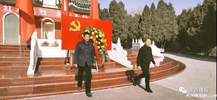 在会师塔前,全体人员为革命先烈敬献花篮。