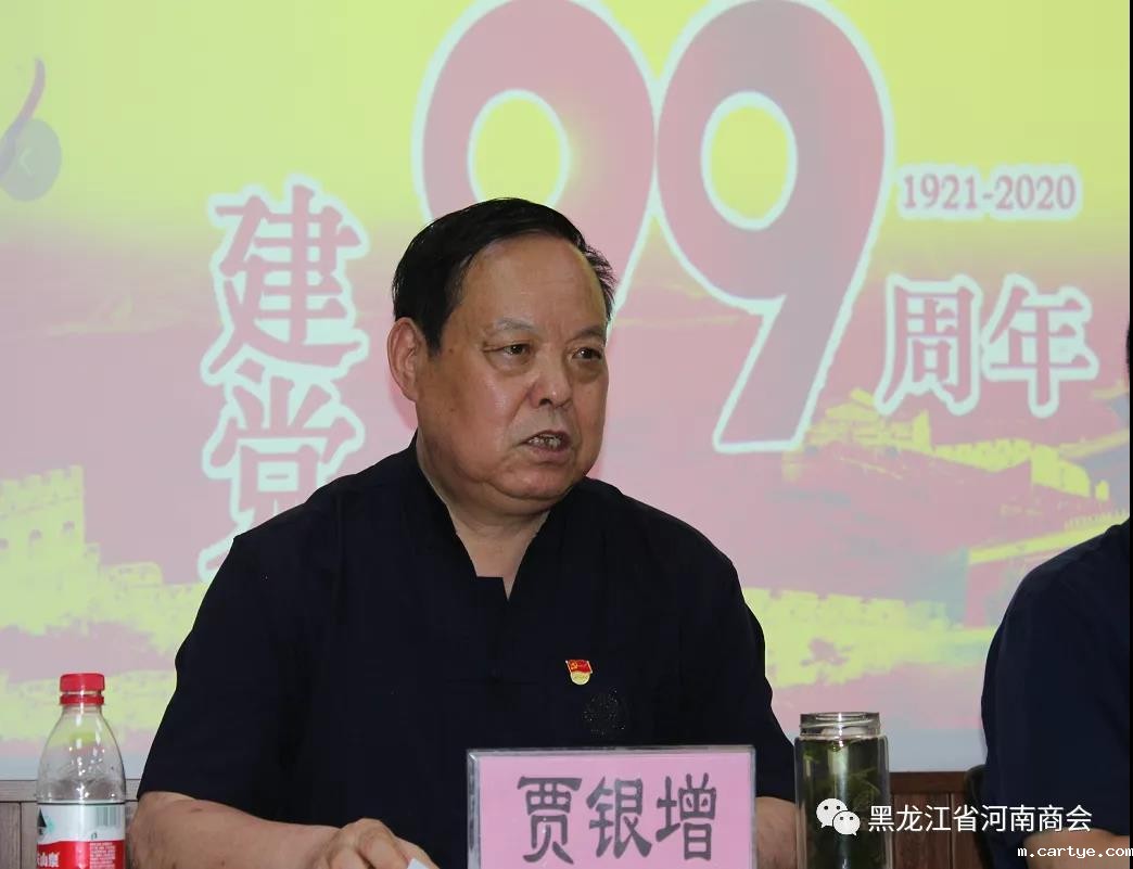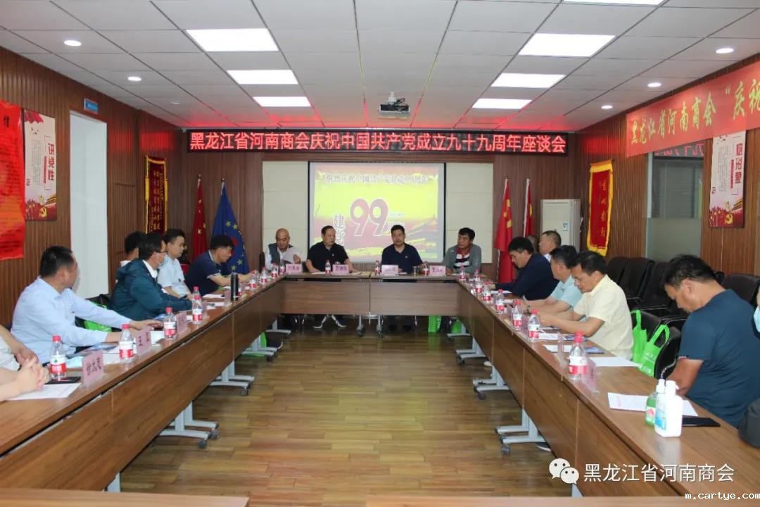 6月27日,黑龙江省河南商会庆祝建党99周年座谈会在商会会馆举行。党委书记贾银增主持会议。