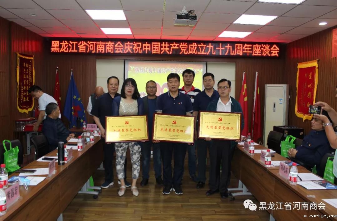 受表彰的先进基层党支部有:齐齐哈尔河南商会党支部、雨晓生物科技有限公司党支部、黑龙江牧原农牧有限公司党支部、哈尔滨旭通投资发展有限公司党支部、哈尔滨双汇大荒食品有限公司党支部、黑龙江东方宝红建筑材料有限公司党支部;受表彰的优秀共产党员有:王国建、刘其祥、刘国宝、董五现、许现珍、曹明奎、唐有明、杨红军、王普周、张宝海、李群安、崔爱民、赵广东、曹跃峰、孔令斌、裴书宏、刘恩阁。