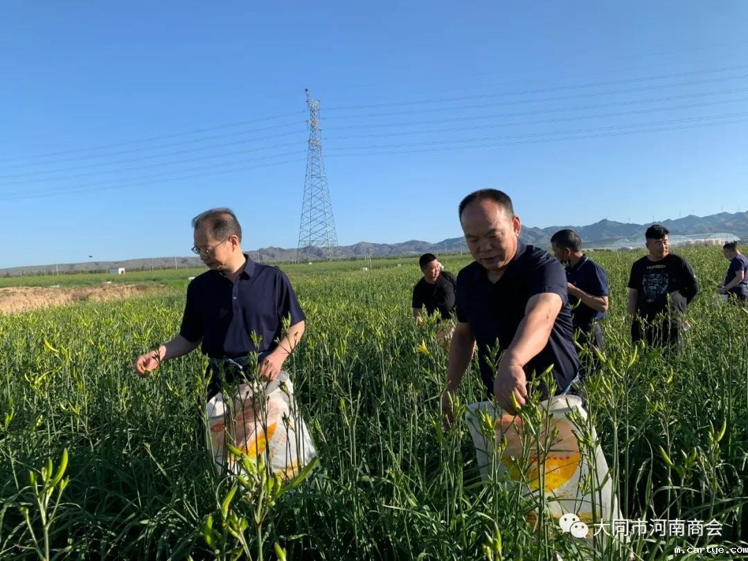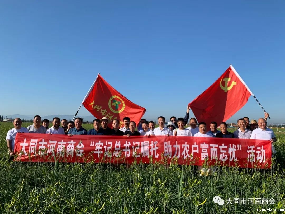 7月7日上午,大同市河南商会积极响应市委、市政府的号召,践行习近平总书记视察山西重要讲话重要指示精神,开展了“牢记总书记嘱托 助力农户富而忘忧”活动。参加本次活动的领导有市委统战部副部长、市工商联党组书记张团,市工商联党组成员、副主席王建平,云州区委统战部常务副部长常玉,市工商联组织会员科科长张艳霞。大同市河南商会会长位应征,书记代立军,秘书长杨如意,常务副会长陈继伟、刘扩建、郑中华、孟国彬、杭小于、韩现中、卢艳功、庄永超、李泊霆、刘海振、郑高伟、崔栋臣、年建文、马连营、郜军齐、麻进喜、高良超、侯喜明及家属一行40余人。