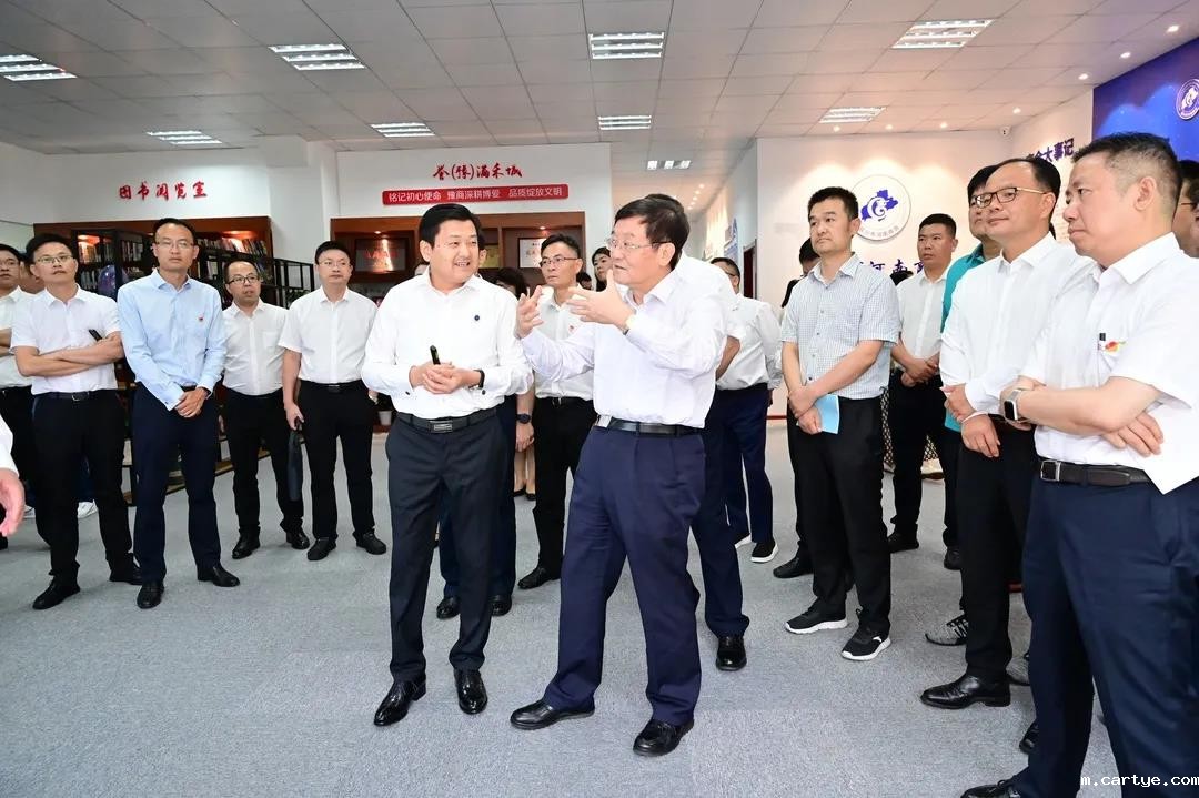 李永宪会长带领徐书记一行参观了科技孵化器、商会文化及党群服务中心建设,介绍了万纳神核控股集团企业情况及商会会员科技发展孵化器、商会委培班、智信管理、育(豫)苗行动、河南商会“四信”建设等内容,重点介绍了北斗七星格局的商会工作模式;党务红领、秘书长刘高宪介绍了数字党建和商会经济情况,商会的各项工作都得到了徐书记、陈书记的高度肯定和赞扬,并交待指导部等负责同志要总结、宣传好河南商会的创新实践经验。