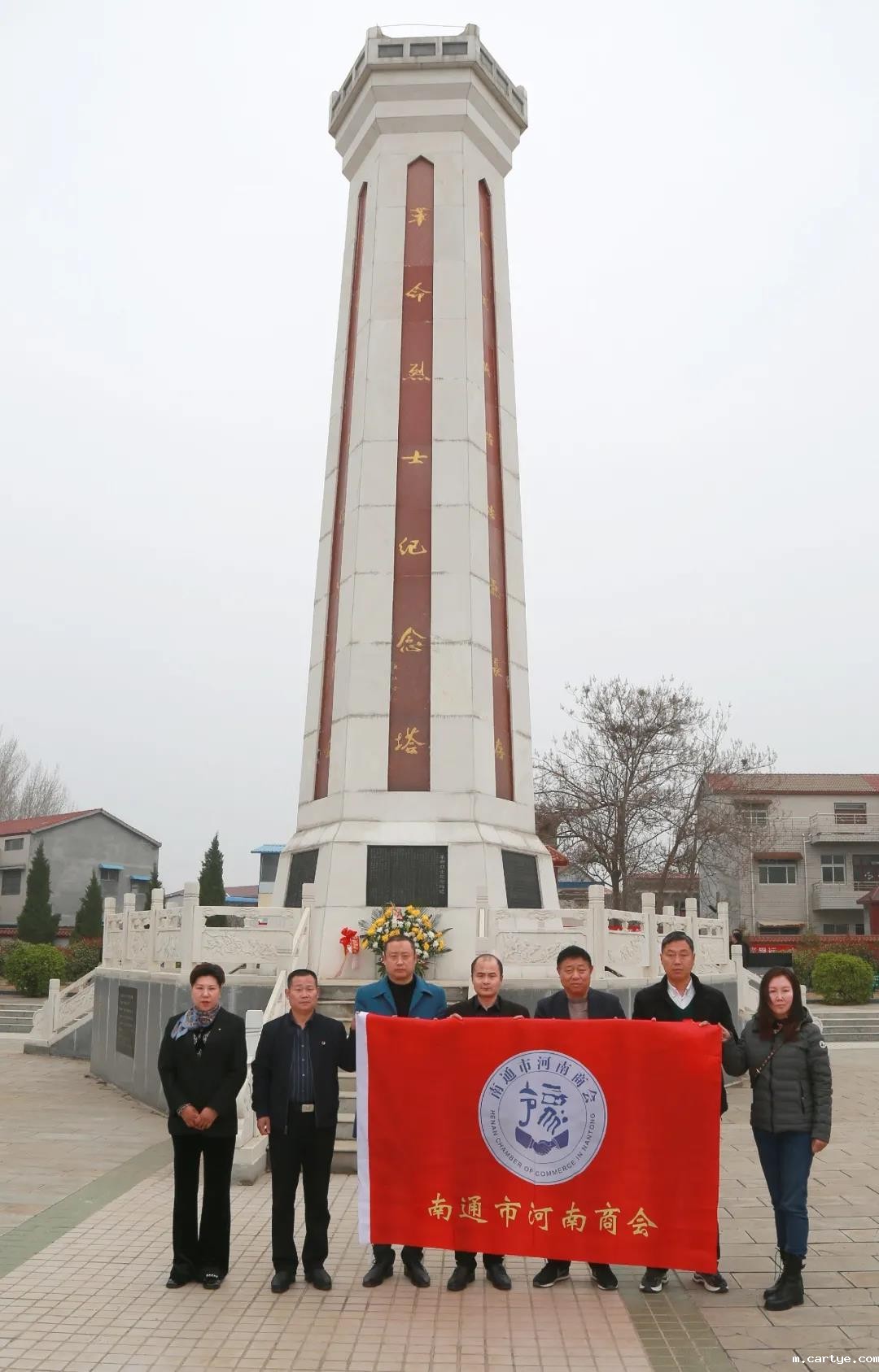 3月13日,南通市河南商会党支部副书记宋忠领,执行秘书长李祝星,常务副会长代表苑国安、杨宗政、副会长代表朱军、朱永建,监事马力、会员代表焦景花、张晓军,青团河南省委驻江苏工作委员会副书记兰大伟等代表商会及在通豫籍老乡前往新乡延津县烈士陵园敬献花篮寄托哀思并到家中慰问烈士家属赠送慰问品、捐赠慰问金。