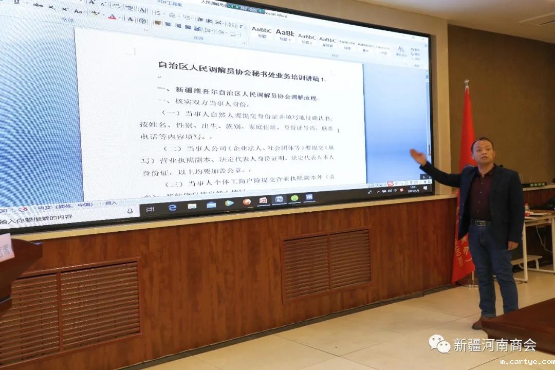 今后,我们新疆河南商会将会进一步加强人民调解组织建设、队伍建设、制度建设,积极化解非公企业民事纠纷和劳动争议纠纷,为商会成员提供强有力的司法支撑。营造稳定有序的营商环境,为依法建疆和实现新疆社会稳定和长治久安总目标,做出我们cartye更大的贡献。
