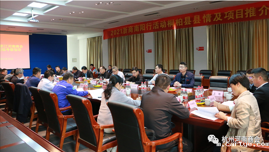 考察团参观了4个县市产业集聚区,走访13家企业,进行了4场座谈交流会。邓州市委常委、常务副市长顾理代表邓州市委政府对考察团一行莅临邓州表示欢迎,邓州市政府党组成员程传平对邓州市情进行推介;淅川县委常委组织部长代表县委政府致辞,欢迎考察团一行考察淅川,副县长、产业集聚区主任崔改平对县情和产业集聚区进行了介绍;桐柏县长贾松啸前往宾馆欢迎考察团一行莅临桐柏,副县长王坡代表县委政府致辞欢迎考察团并介绍县情;考察最后一站座谈交流会上,南阳市政协副主席、南召县委书记刘永国介绍南召近年来高质量发展情况。市商务局局长司仁银对四天的考察活动进行了简要总结、向考察团介绍了“十四五”规划期间南阳商务发展方向和招商引资的侧重点,欢迎企业家们投资南阳,共享南阳经济发展成果,并表示市商务局将一如继往做好服务工作,搭好企业与地方政府的桥梁。市商务局二级调研员潘少峰、市创引办综合部部长方鹏程、信息部副部长郑凯、驻杭联络组全体成员和市开放办的同志全程陪同,并认真向大家介绍南阳的市场资源、产业政策、“十四五”产业招商重点。杭州河南商会执行会长王森(浙江省南阳商会会长)、党支部书记吴元伟分别做了交流发言,并对考察团提出了建设性的意见和建议。杭州河南商会副会长牛少勇、陈小飞、浙江省南阳商会副会长李洲也分别介绍了自己的研发项目,期待达成合作意向。杭州河南商会执行秘书长郑贵甫受杭州河南商会会长朱朝阳委托,对南阳市的热情接待表示衷心感谢,要求与会人员要深入学习各项招商政策,做好宣传河南、推介南阳的代言人,为南阳市的经济发展做出应有的贡献。