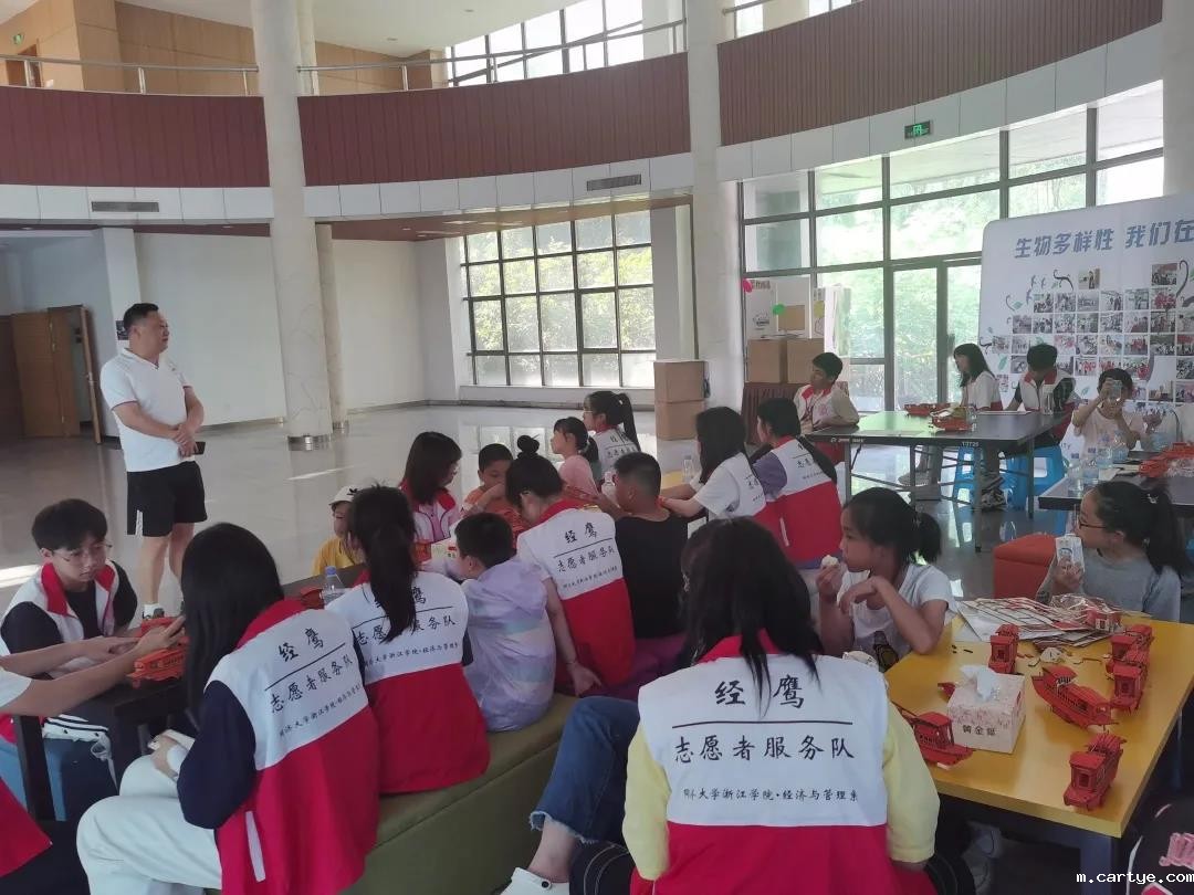 组装完成后,嘉兴市河南商会党务红领、秘书长刘高宪为小朋友们介绍中国共产党成立的历史。从敌人眼下的紧张筹备到被迫从上海转移嘉兴南湖的一条小船上,在这艘船上通过了《中国共产党的第一个纲领》,后来,这条小船被称为“红船”。刘红领还带领大家共同学习了红船精神的内容,以及建党百年的重大历史意义,让结对孩子、大学生志愿者对中国共产党的成立历史、红船精神等内容有进一步的了解,让孩子们了解现在的幸福生活是无数先辈用生命换来的,让他们珍惜当下,好好学习,长大报效祖国。