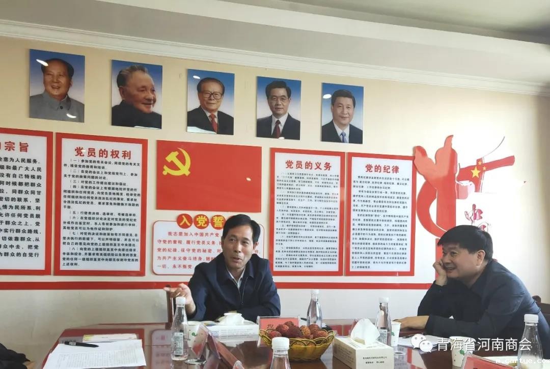 6月4日下午,青海省委统战部副部长、省工商联党组书记张文华,省工商联党组成员、秘书长罗顺邦一行莅临青海省河南商会调研、指导工作,会长刘强、党支部书记吕敬琦、监事会主席安红会、常务副会长李保民、余林涛、副会长徐全心、张传雷、马刚良、毛国闯、秘书长肖崇飞、党办主任薛鹏飞参加了座谈会。