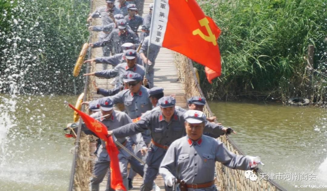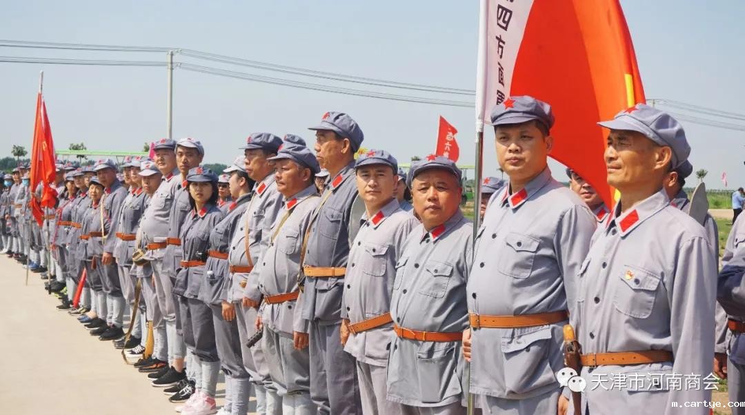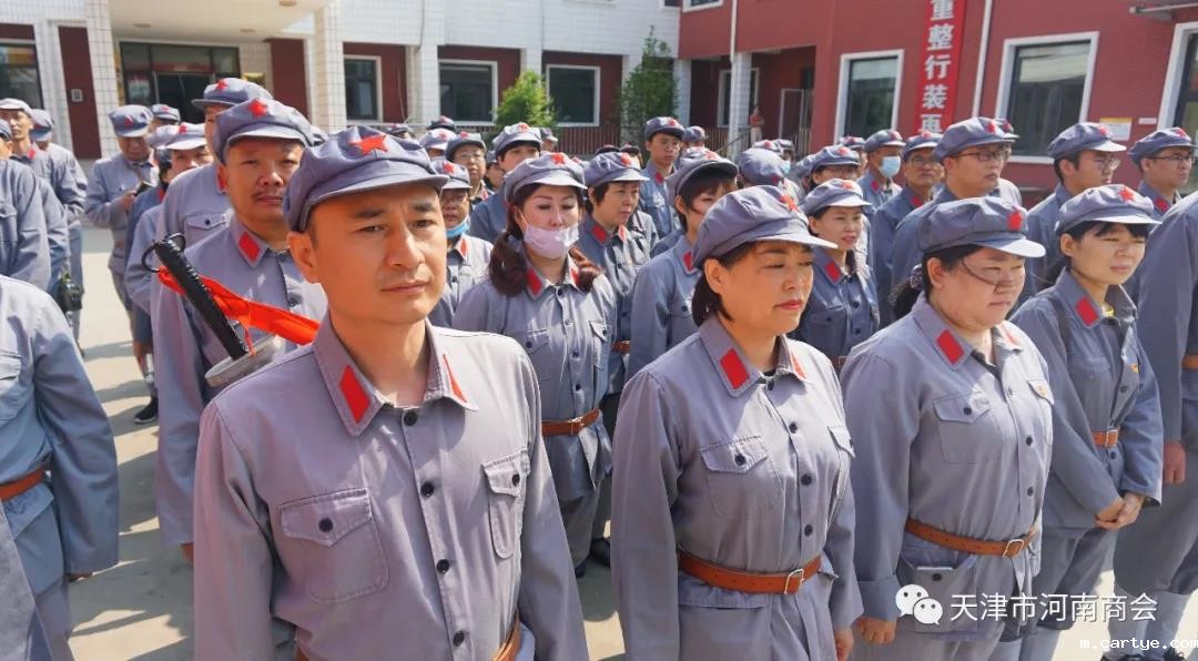上午8点30分,参加活动的党员在天津市河南商会会长宋富锦、党支部书记孙文礼、人寿保险天津滨海新区中心支公司党支部书记孙秀萍的带领下,准时到达辛口镇第六埠村重走长征路红色教育基地。大家脱下便装,着上军装,带上武器装备,个个精神抖擞,斗志昂扬。