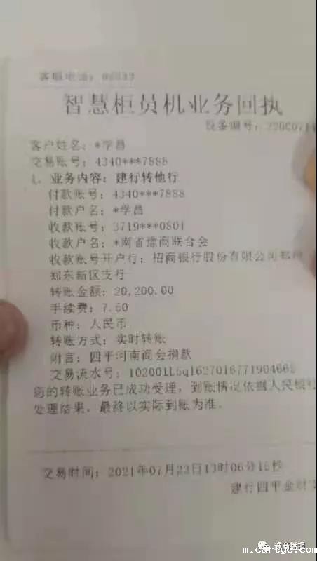 7月23日,四平市河南商会将募集来的20200元善款,汇至优米app下载安卓,委托转交灾区。