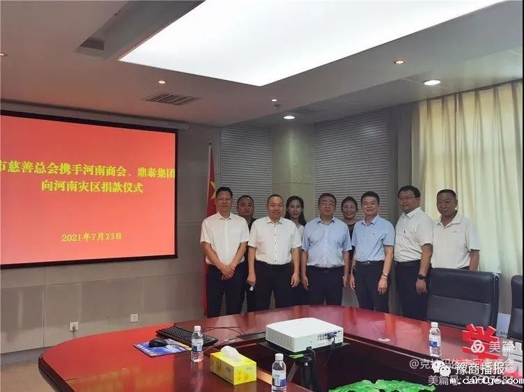 河南灾情出现后,克拉玛依市河南商会在会长王荣欣带领下迅速成立应急援助小组,组织向家乡河南郑州抗洪救灾重建家园的捐款活动。仅7月22日一天时间,会长企业克拉玛依市鼎泰建设集团、河南商会会员共捐款130余万元。克拉玛依市河南商会所收善款委托市慈善总会转交灾区。
