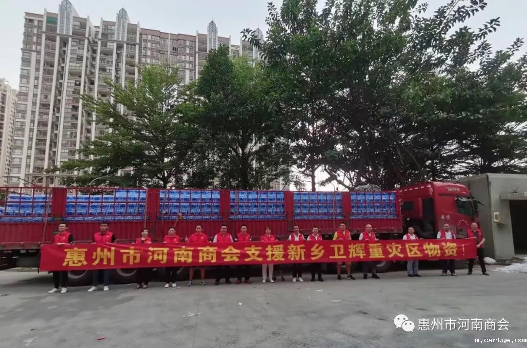 7月28日下午,由惠州市河南商会捐赠的第二批救灾物资30吨矿泉水(48000支)等物资,总价值83500元,即将启程驰援灾区新乡市卫滨区八里营村,助力河南新乡灾区一线。惠州市河南商会第二笔救灾款90300元,29日上午已转交河南省人民政府驻广州办事处。
