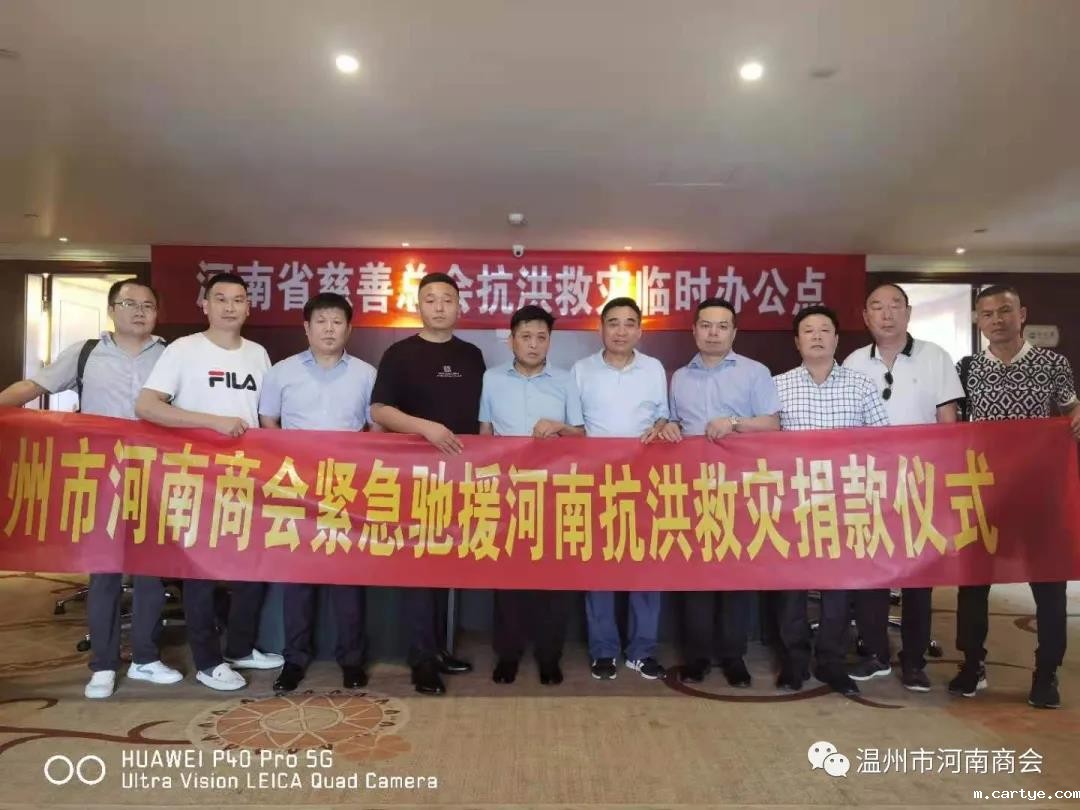 7月27日,温州市河南商会会长李俊一行,把商会的捐款直接送到河南省慈善总会。