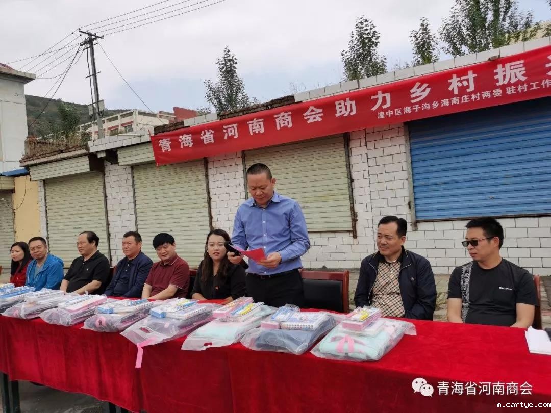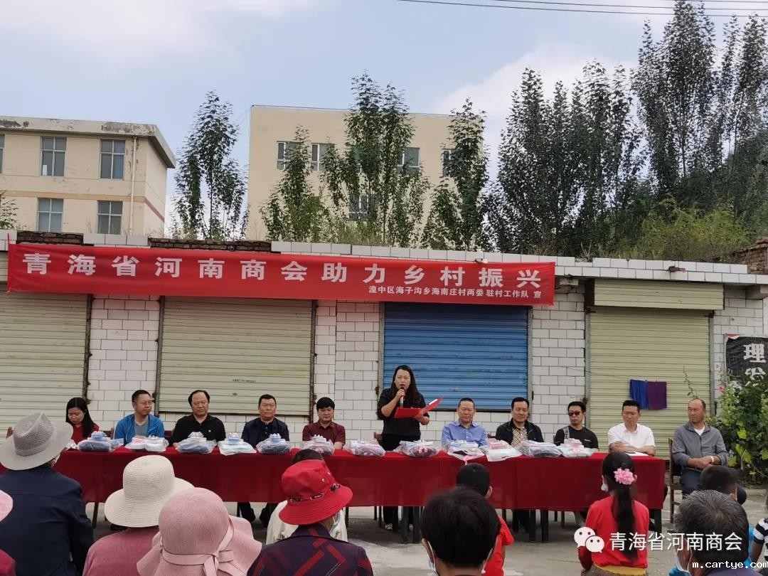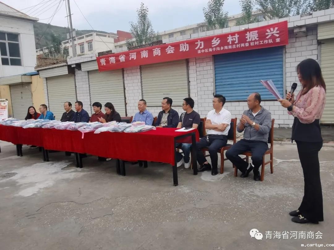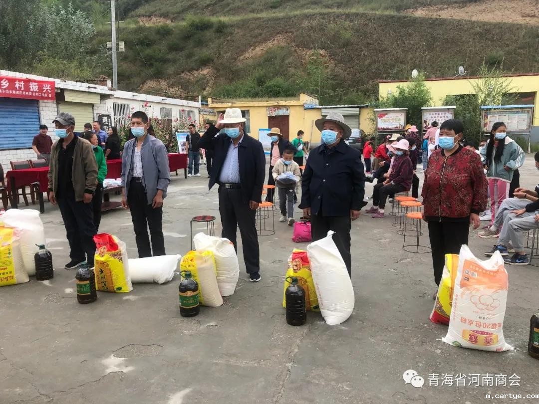 8月20日上午,为响应党中央和省委省政府号召,助力乡村振兴,积极为群众办实事,青海省河南商会会长刘强、党支部书记吕敬琦、常务副会长高新伟、常务副会长余林涛、副会长王榜周、秘书长肖崇飞、党办主任薛鹏飞、商会理事罗扩军、邓旭,一行赴湟中区海子沟乡海南庄村开展“关爱贫困群众、助力乡村振兴”爱心捐助活动。为该村群众送来五万余元的防疫物资、生活物资、学习用品。