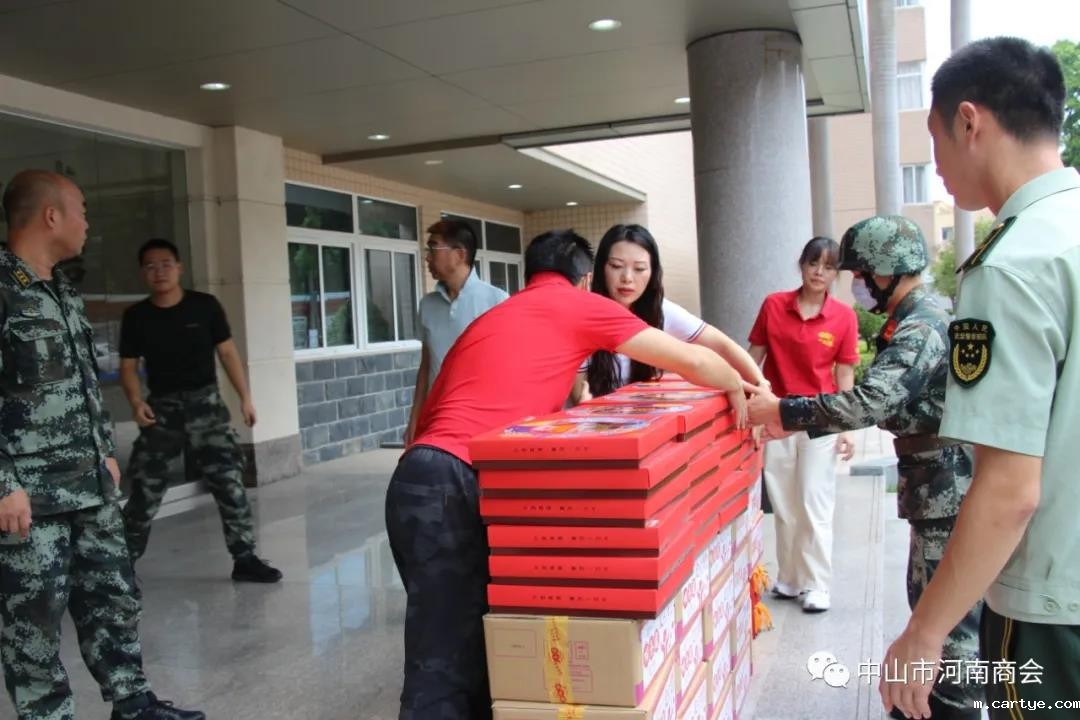 9月18日上午,中山市河南商会监事长张延杰,秘书长王丽等一行来到武警中山支队通过“情感拥军、服务拥军”为支队战士送温暖、共促双拥和谐。张监事长向武警战士们致以节日的祝福,并送上价值15000元的月饼等慰问品,并表示商会今后将会继续大力弘扬军爱民、民拥军的光荣传统,不断发展坚如磐石的军民关系。多多支持、拥护党和部队官兵工作,促进相互理解、互相支持,共谱军民鱼水情新篇章。