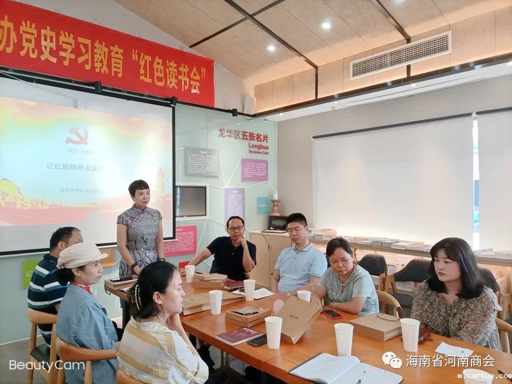 9月30日下午,海南省河南商会组织举行“庆国庆红色读书会”。商会副会长许允泰给在座的各位会员和书友上了一堂生动的党课,讲述中国共产党百年征程中的波澜壮阔,历久弥坚。“历史是最好的教科书。中国共产党的百年征程,是苦难中铸就辉煌、奋斗后赢得未来的百年。能够让我们认清历史方位,汲取前行的智慧与力量。这是极为宝贵的精神财富。” 来有收获,回有提升,红色读书会有氛围、有好书,点燃了现场气氛,在心得分享环节,大家纷纷发言,直抒胸臆。大家都说,这次读书会办得好,是一种精神享受的过程,沉醉书香,感悟党史,交流互动,深受鼓舞,以学促干,坚守初心,不忘来路,同时会员间加深印象,增强黏性。希望读书会持续输出,成为会员朋友心灵休憩和提升自我的地方。