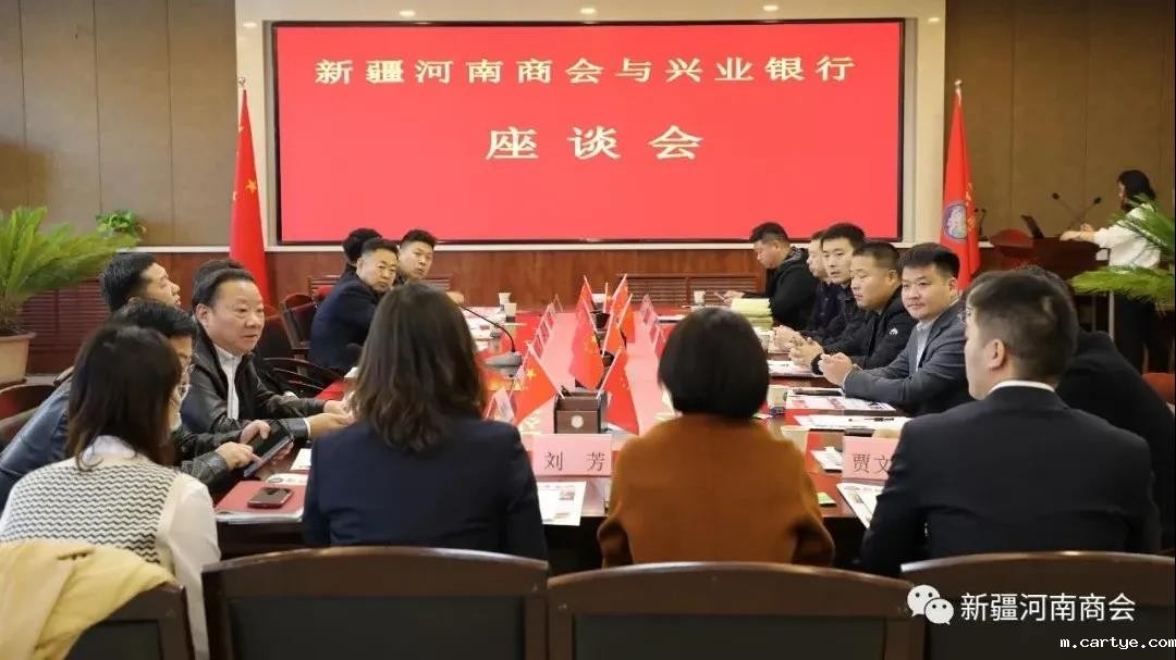 11月5日,新疆河南商会与乌鲁木齐市兴业银行举行了座谈会,对接银企合作,服务cartye发展。乌鲁木齐市兴业银行企业金融部总经理刘芳,副总经理韩平平,零贷中心主任裴腾越,中小企业部产品经理贾文明参加座谈会。他们针对中小企业的贷款政策等给大家进行了认真讲解。双方围绕河南商会和兴业银行的合作进行了友好座谈。朱军会长表示,兴业银行服务全方位、多层次、宽领域,灵活多样、效率高、服务优,是为企业提供保障的金融平台。这次走进河南商会送温暖、送服务,给我们企业多了一个融资的渠道。我们以后要加强和兴业银行的合作,共同为建设大美新疆做出自己的贡献。