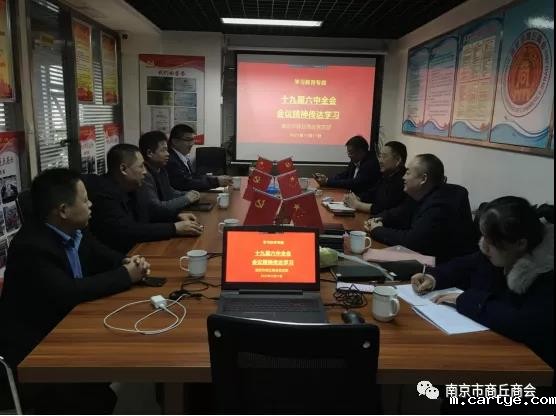 11月17日,南京市商丘商会党支部召开支部党员大会,会议期间组织学习了《中国共产党第十九届中央委员会第六次全体会议公报》,与会人员围绕学习党的十九届六中全会精神进行了交流。党支部书记李清华总结到:党的十九届六中全会是在我们党百年华诞的重要时刻,在“两个一百年”奋斗目标历史交汇关键节点上召开的一次重要会议。作为党员和企业家,我们要深刻理解全会精神的丰富内涵与核心要义,自觉把思想和行动统一到全会精神上来,不忘初心、践行使命,为全面建设社会主义现代化国家、夺取新时代中国特色社会主义伟大胜利、实现中华民族伟大复兴的中国梦作出新的更大贡献。