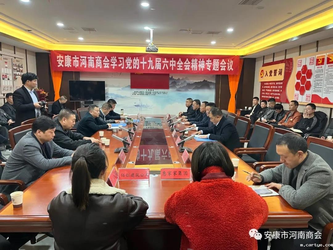 安康市河南商会党支部召开支部扩大会议,专题传达学习了党的十九届六中全会精神,并对下一步在会员企业中贯彻全会精神进行了安排部署。会上,赵士魁书记就如何深入学习贯彻全会精神,如何深刻领悟《决议》的决定性意义,按照梳理的八篇人民日报评论员文章,和大家一起进行了学习领会。大家一致表示要更加紧密地团结在以习近平同志为核心的党中央周围,全面贯彻习近平新时代中国特色社会主义思想,大力弘扬伟大建党精神,弘扬企业家精神,牢固树立新发展理念,不断提升企业技术创新能力,为实现第二个百年奋斗目标、实现中华民族伟大复兴的中国梦而不懈奋斗。