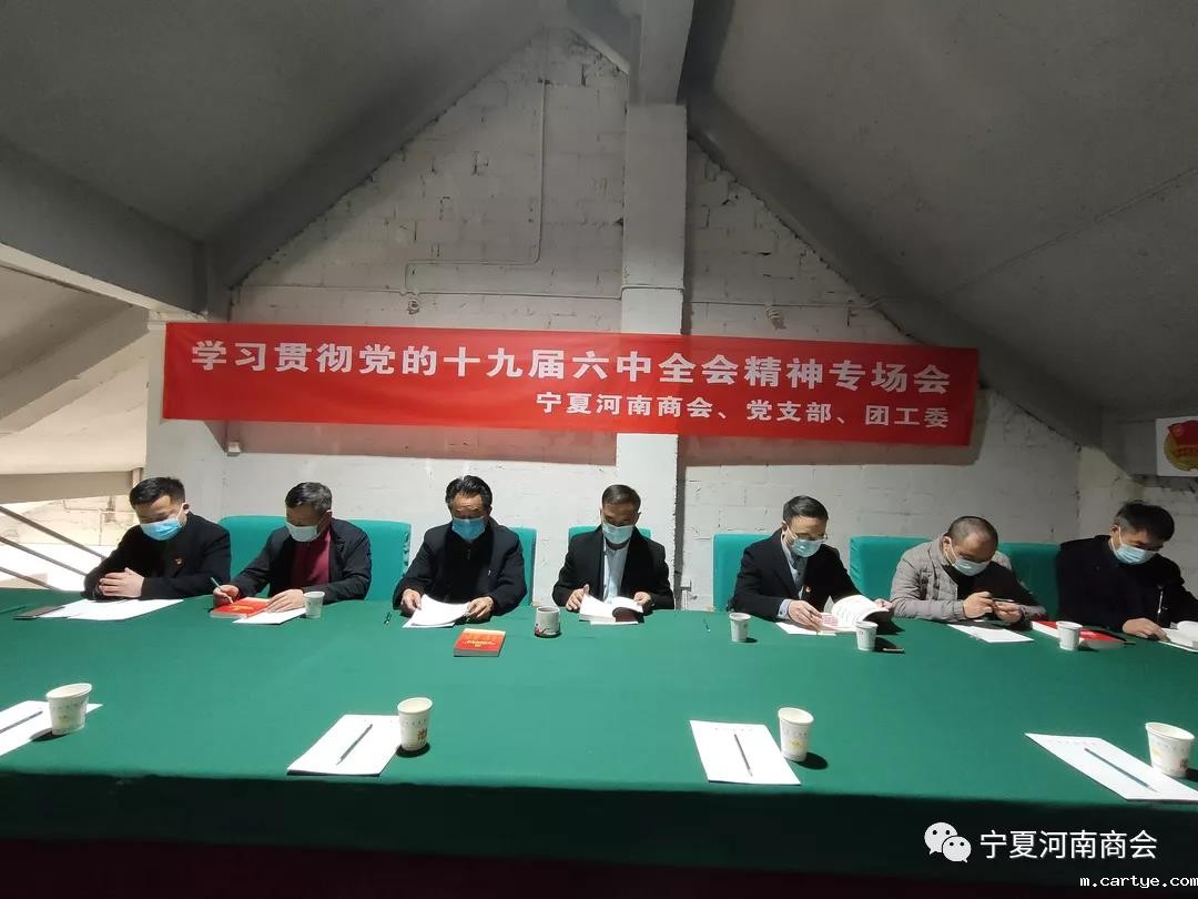 12月3日,宁夏河南商会、商会党支部、团工委组织党员、团员和党团积极分子共17名会员,集中学习了党的十九届六中全会精神。三万多字的宣讲材料,大家边学习边讨论,不知不觉四个小时过去了。大家一致认为,学习贯彻六中全会精神是今后一个阶段的首要政治任务需要要下功夫才能学懂悟透,我们生活在这光荣与自豪的伟大时代,同时又倍感肩上的责任使命重大,要更加严格要求自己,努力学习,勤奋工作;要感党恩、听党话、跟党走,为实现中华民族伟大复兴的中国梦贡献自己的力量,以崭新的姿态和优异的成绩迎接党的二十大的胜利召开。