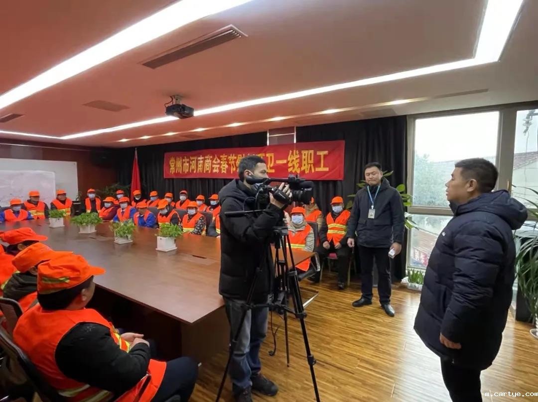 1月26日,常州市河南商会代会长刘河同副会长秦强、理事杨化明、王长青等,看望慰问留常州过年的一线豫籍环卫工人,赠送给每位老乡价值200元的年货礼盒。刘河表示,你们平时用辛勤的汗水让常州环境保持干净整洁,当疫情防控形势紧张时,你们积极响应政府疫情防控号召,主动提出在常州原地过年,用你们的行动彰显了河南人的忠厚朴实和重义重情,我谨代表常州市河南商会全体会员向你们致以崇高的敬意和新春的祝福。